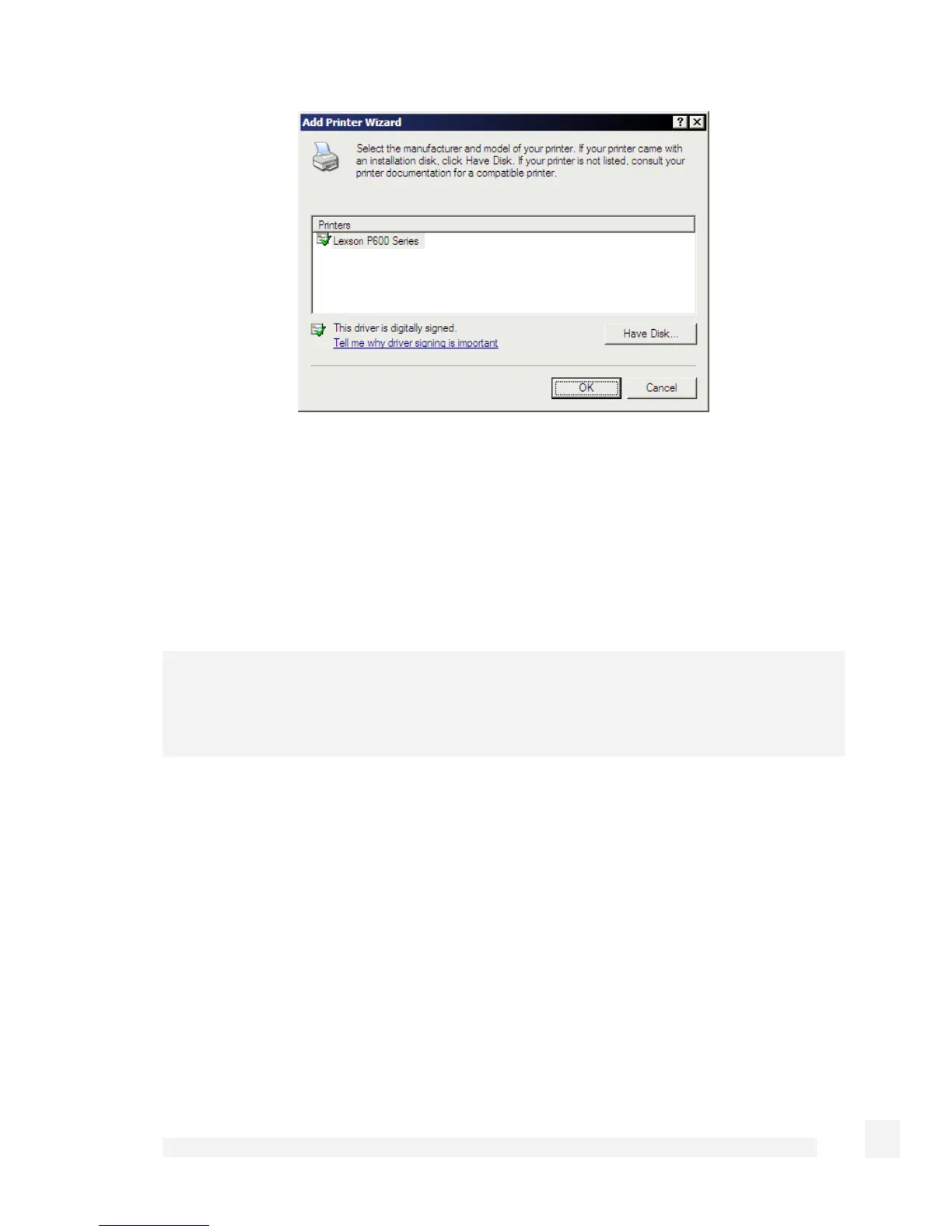 If your printer model is not listed, click Have Disk and Browse again. Drivers for several