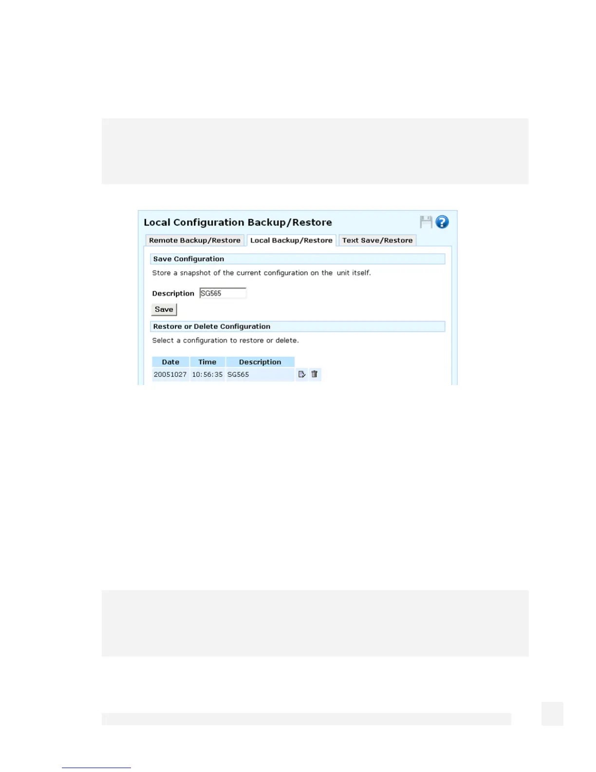 Restore or Delete Configuration. Restoring a remote or local configuration snapshot