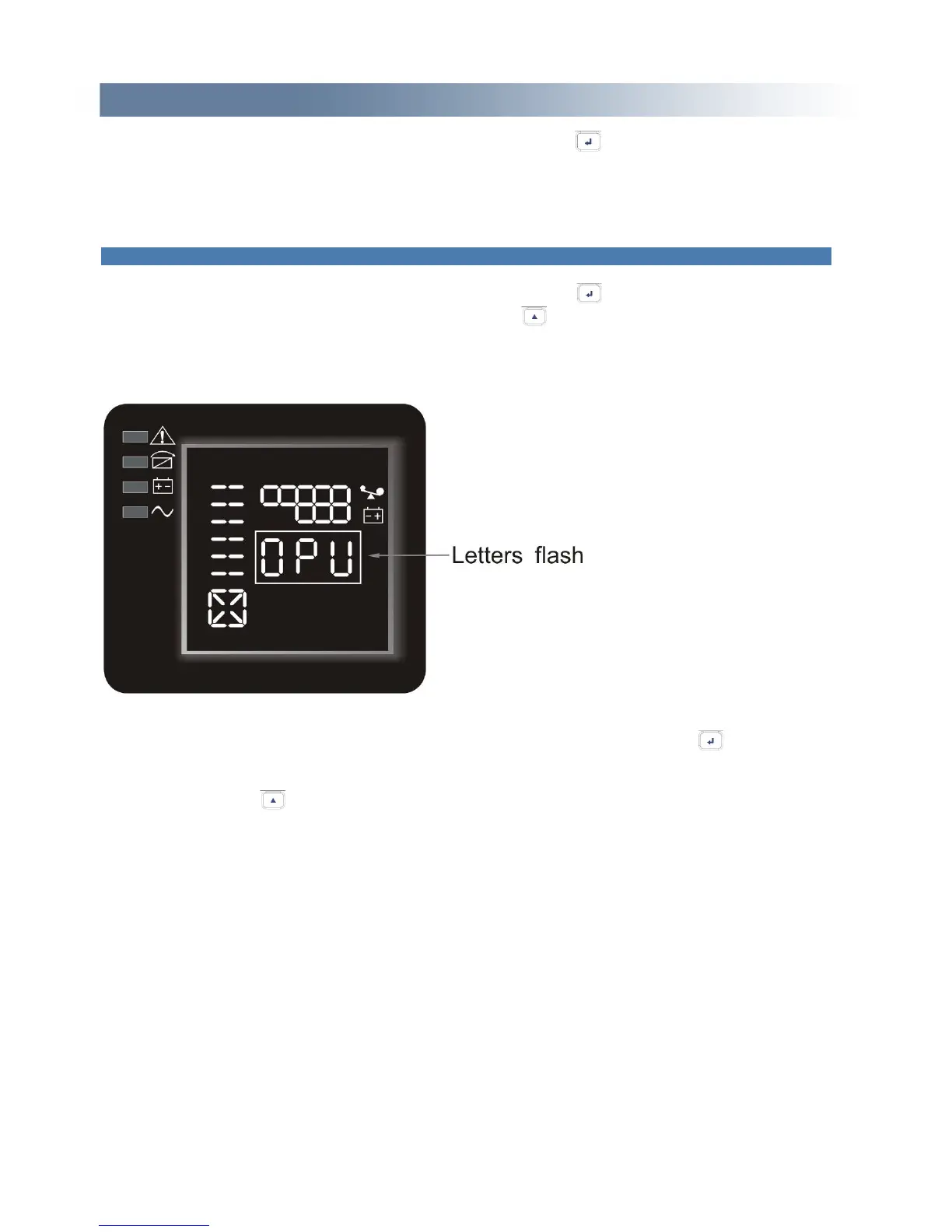 the letters “OPU” will light for a long time. The numerical value below the OPU will flash. Press and
