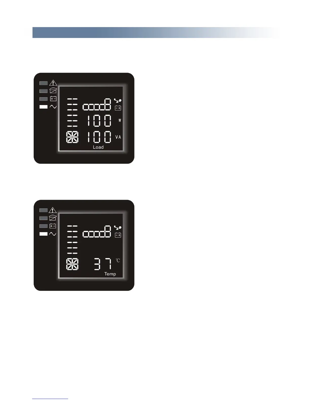 Temperature: Display the temperature of the inverter in the UPS. As the following graphics shows: the