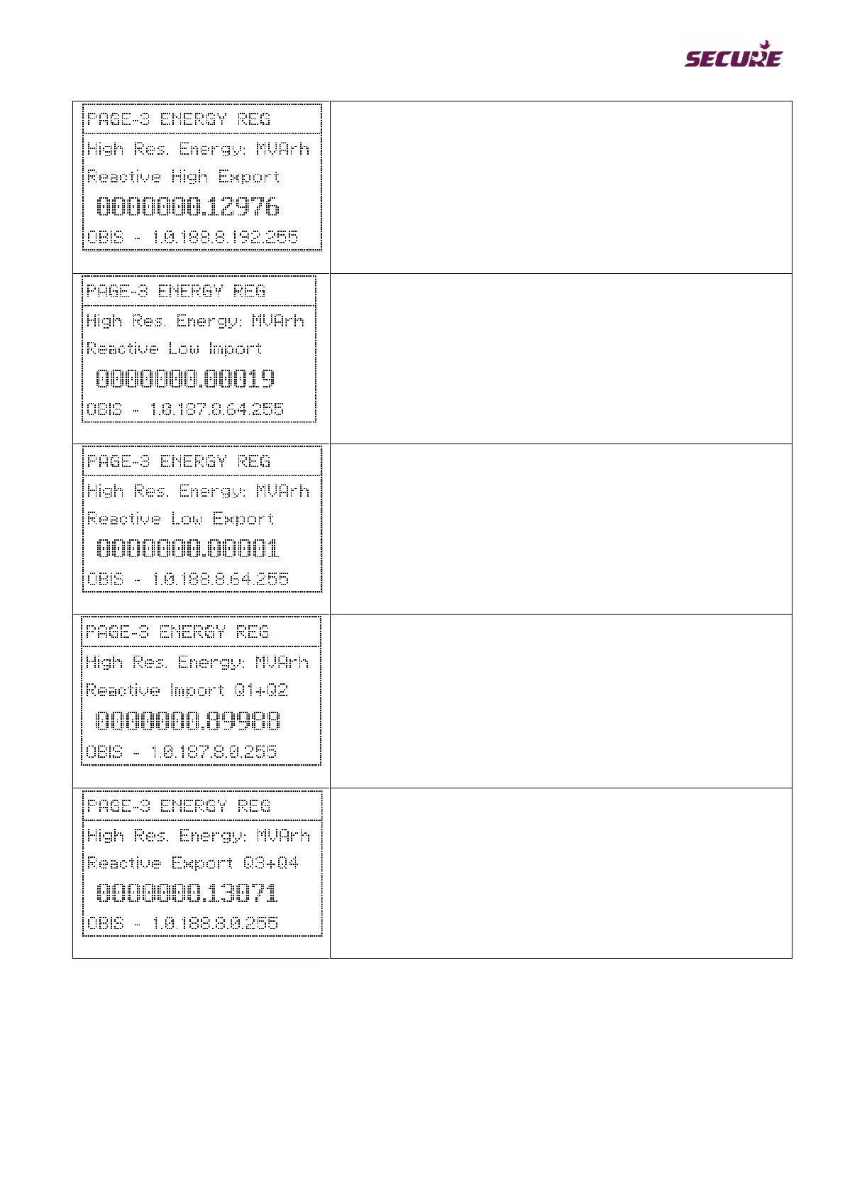 High resolution energy register for reactive export (Q3+Q4) displayed
