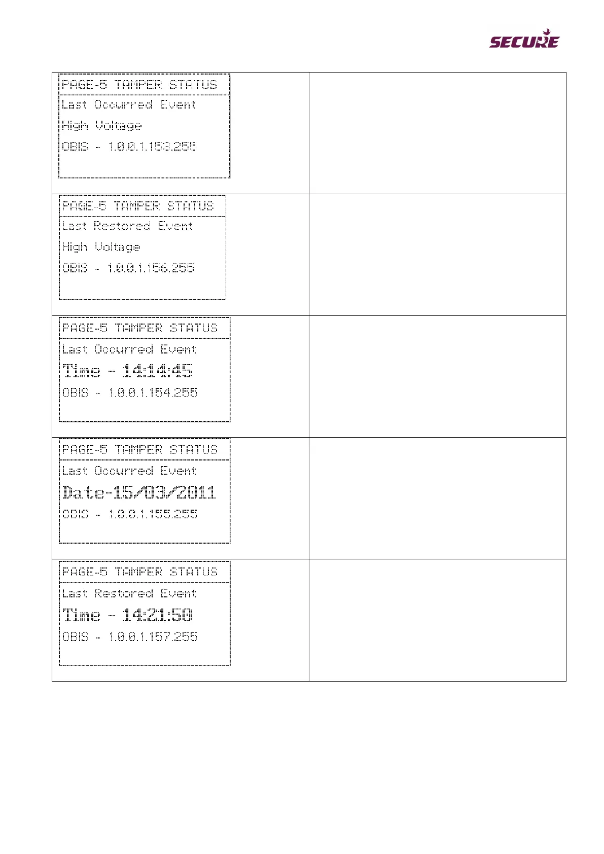 This screen shows the last occurred event.