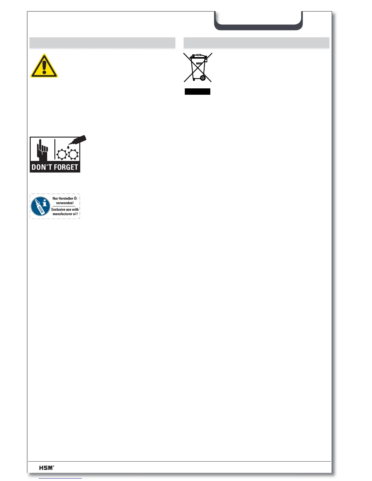 • Pulverize óleo especial em toda a largura