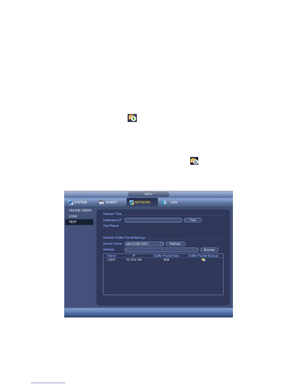 Network Sniffer backup: Please insert USB2.0 device and click the Refresh button,