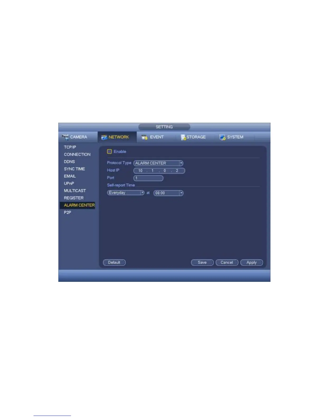 From main menu->Setting->Network->P2P, you can go to the following interface, the P2P