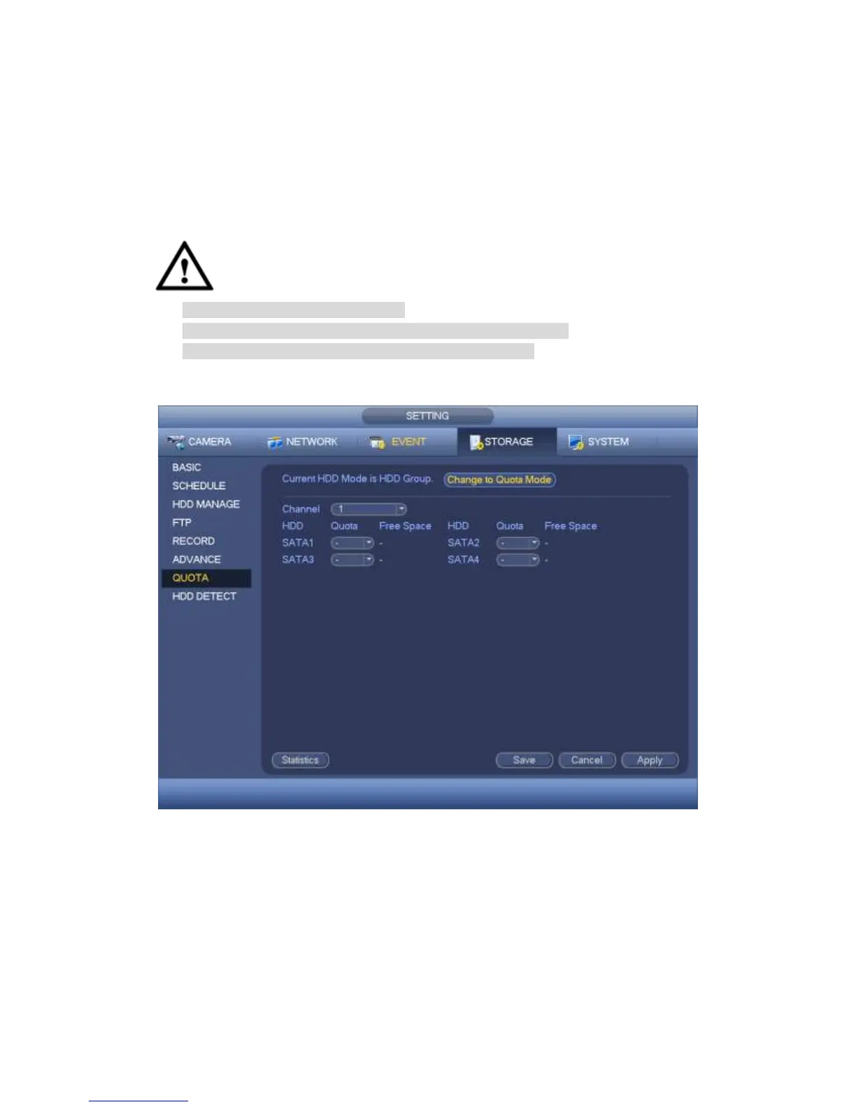 Step 4 Click Statistics to view HDD capacity you set for each channel. See Figure 4-192.