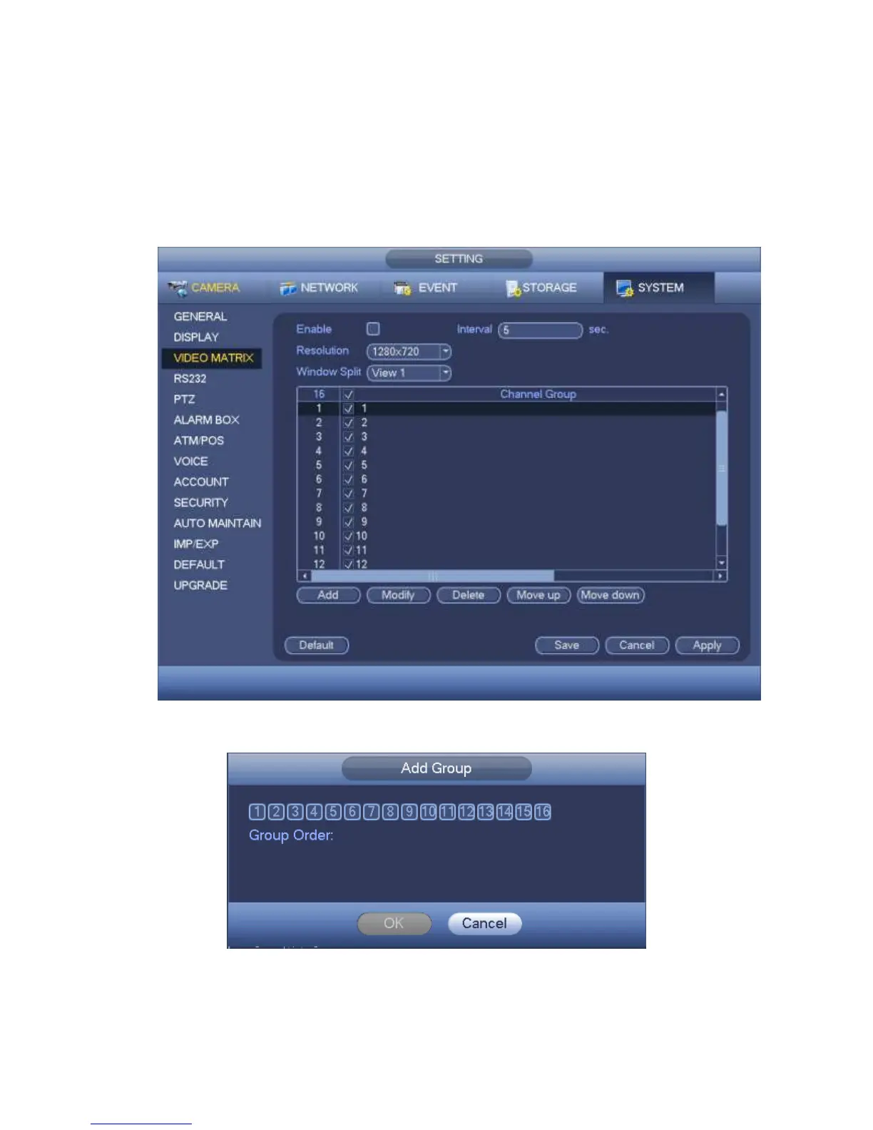 Delete: Click it to remove selected channel group.
