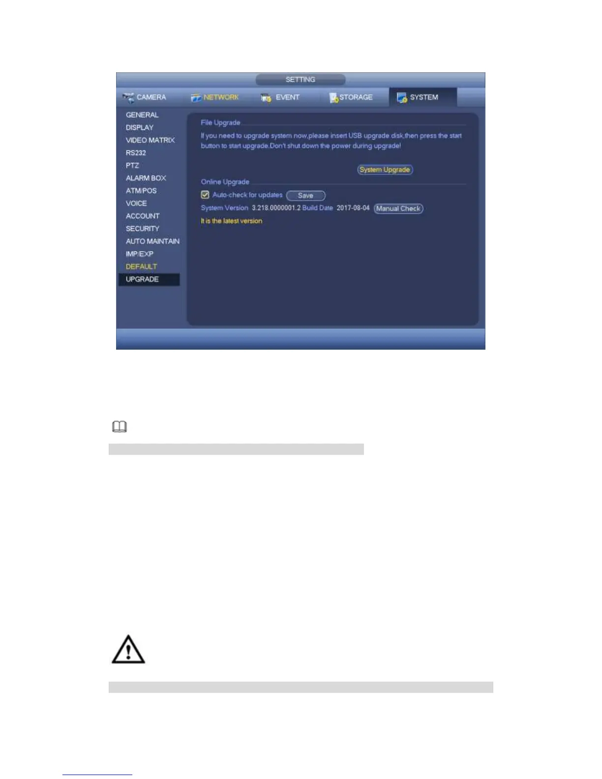 When the DVR is online, you can use the online upgrade to update the firmware.
