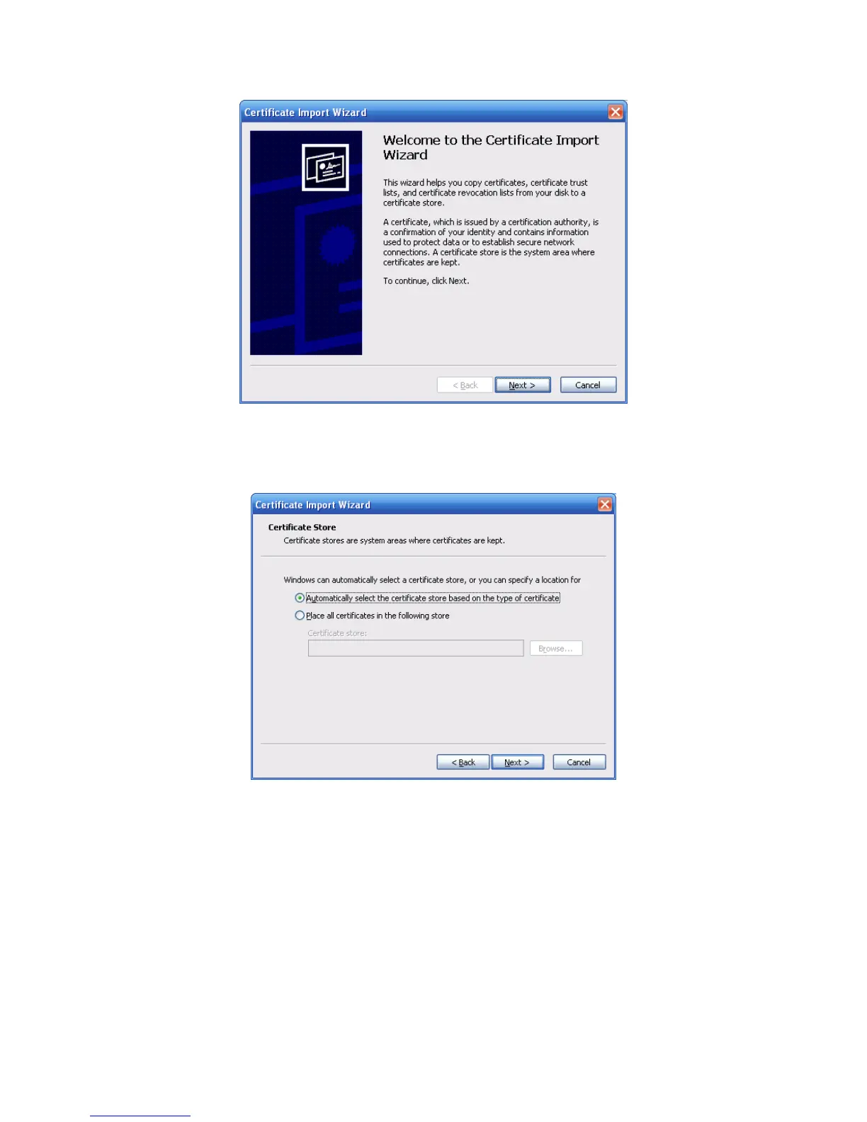 Click Next button to continue. Now you can select a location for the certificate. See Figure