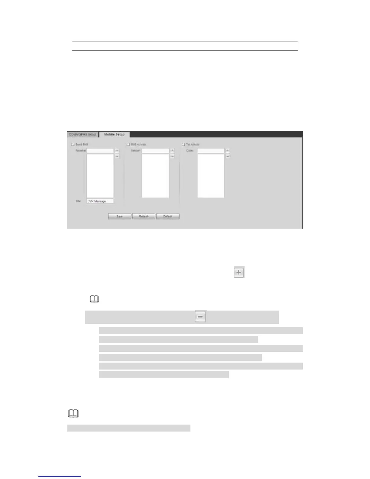 Send SMS: Check the box to enable this function. Various kinds of alarm can