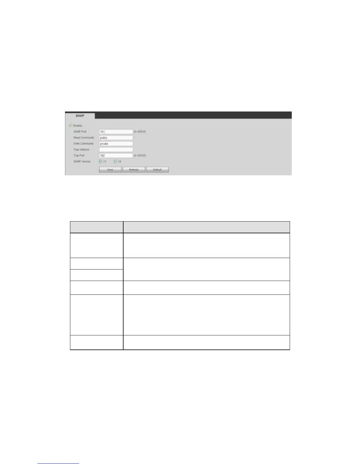 Step 2 Check the enable box to enable SNMP function. Trap address refers to the PC