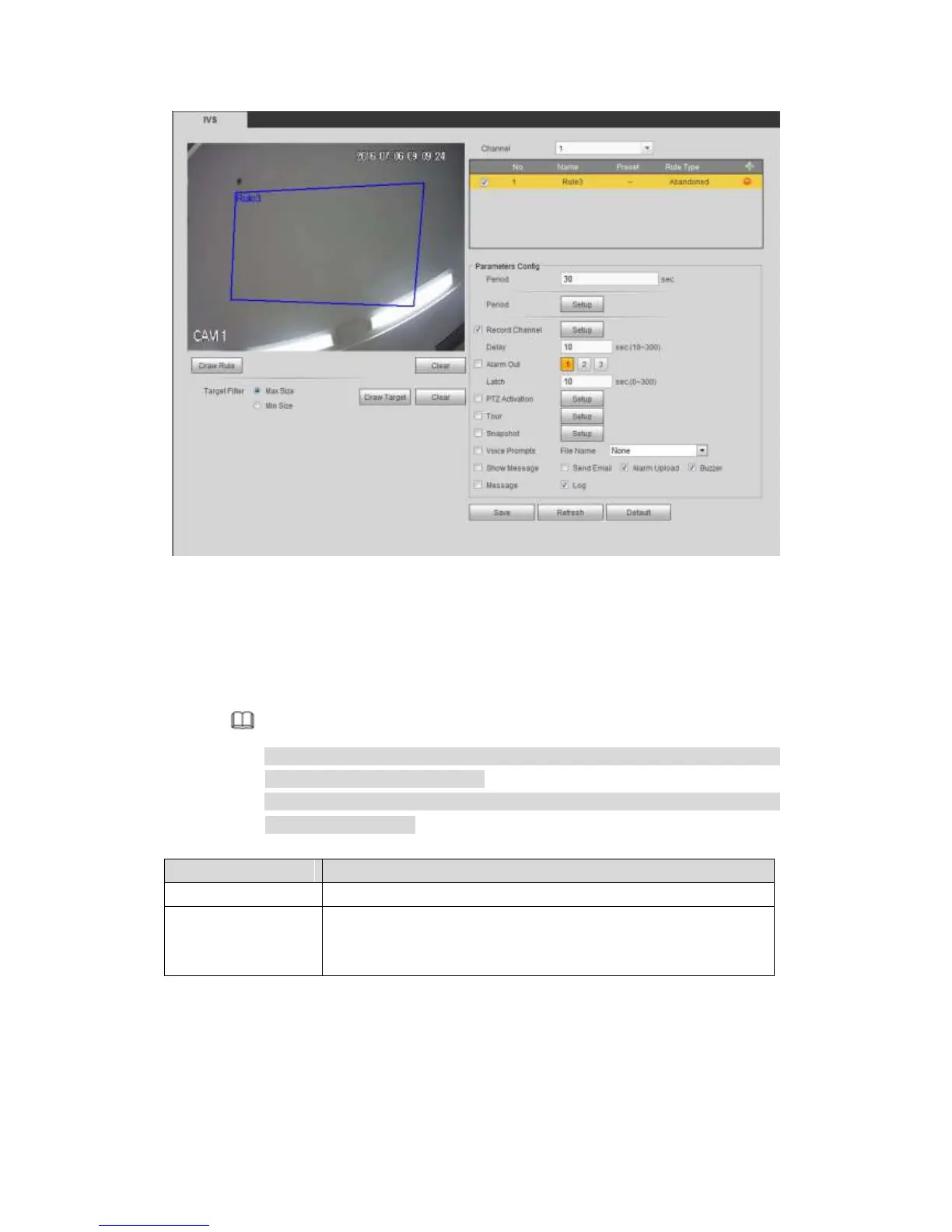 2. Click Draw target to draw the rectangle zone.
