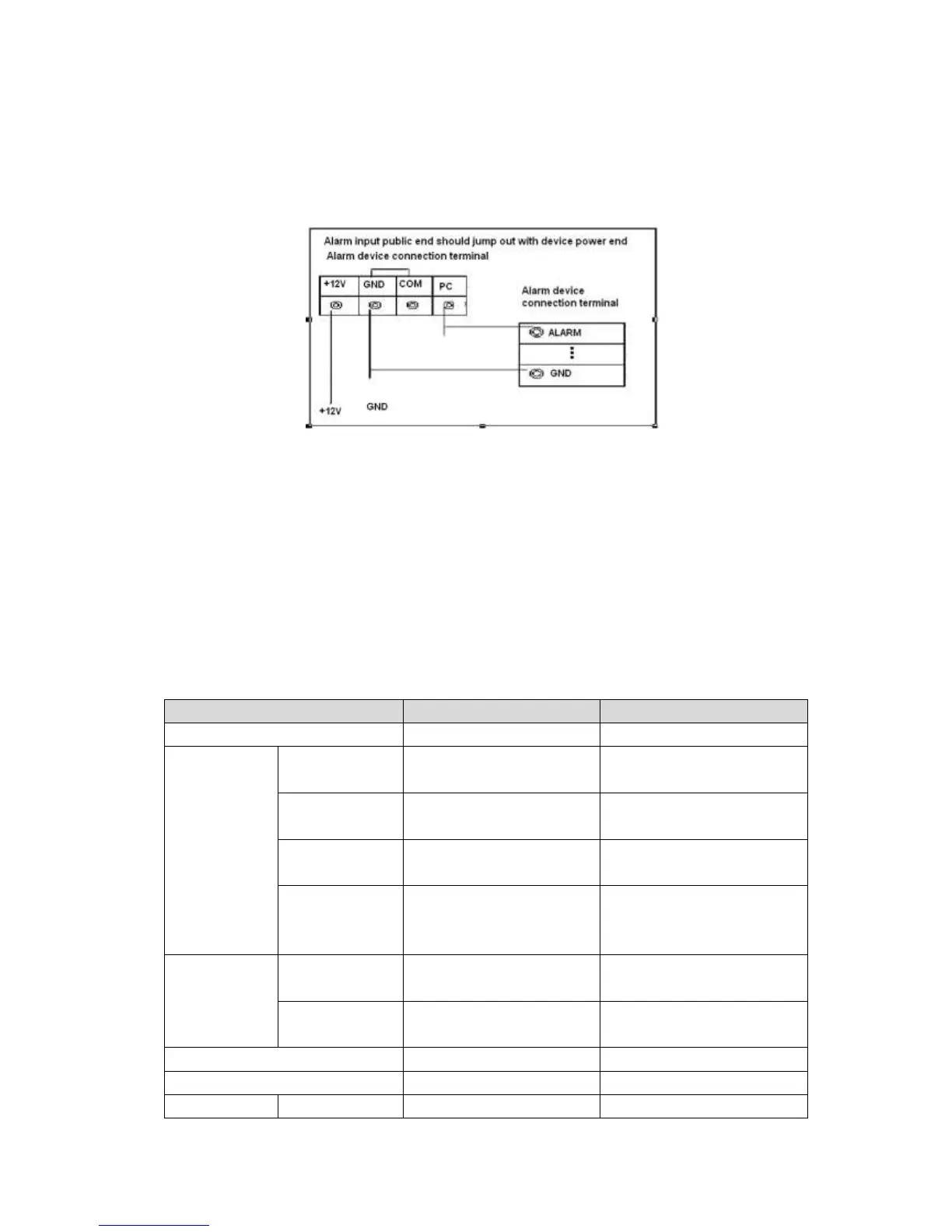 Use the same ground with that of DVR if you use external power to the alarm device.