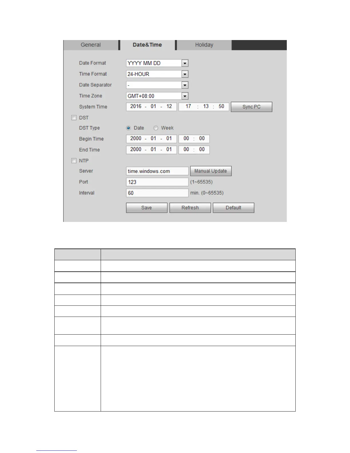 Interval: It is to set the sync time interval between the DVR and the NTP