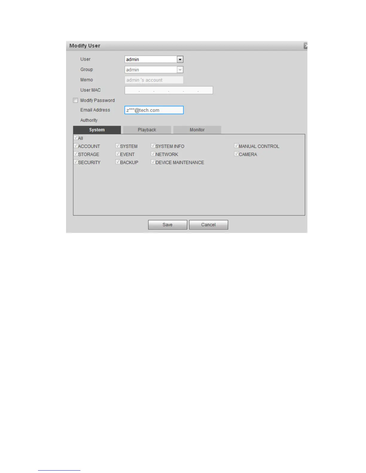 Modify password