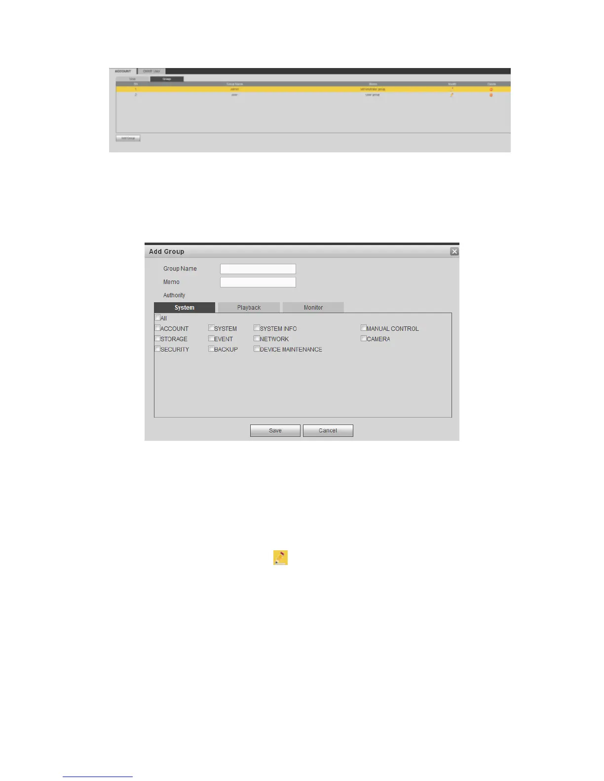 Step 2 Input the group name and then check the box to select the corresponding rights.