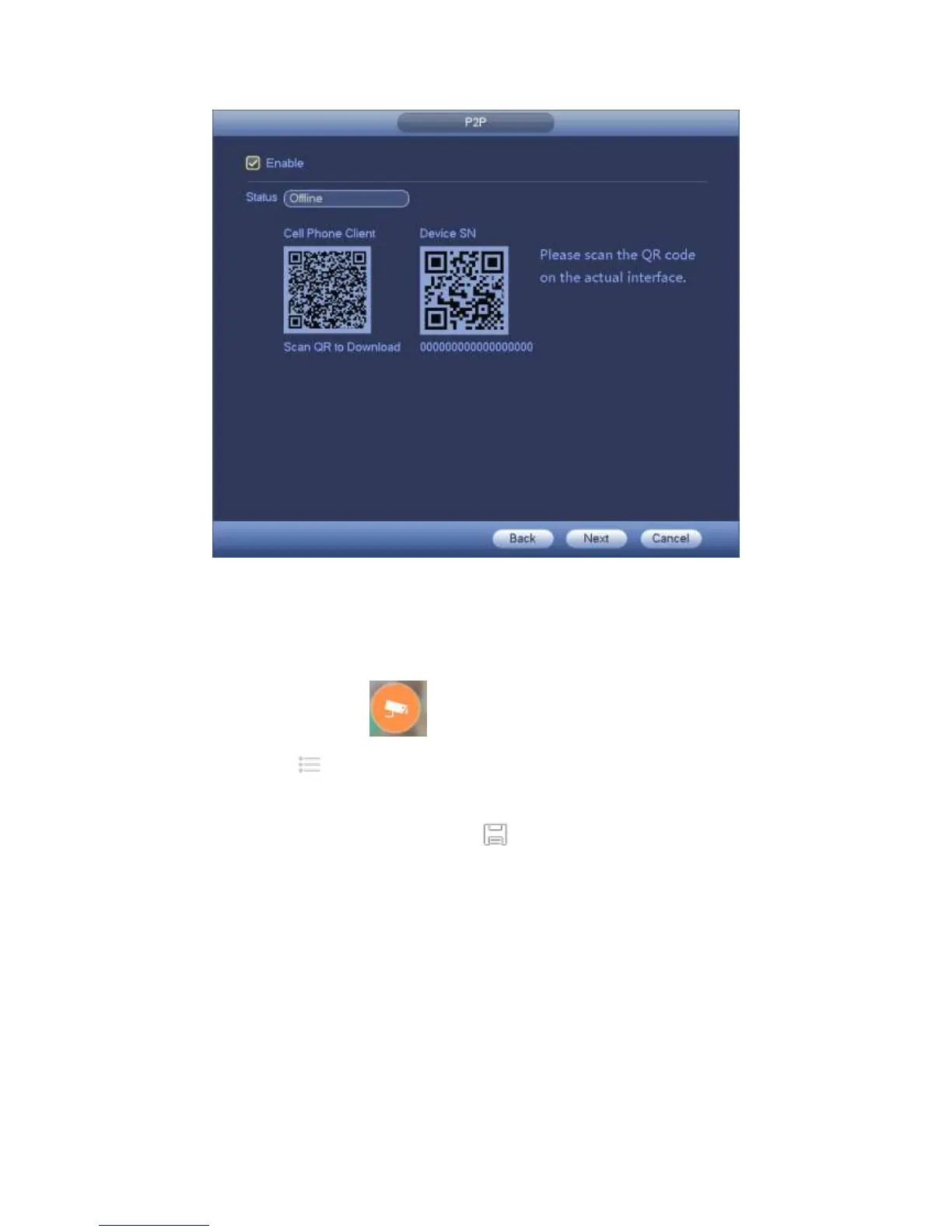 3. Tap Device manager button, you can use several modes (P2P/DDNS/IP and