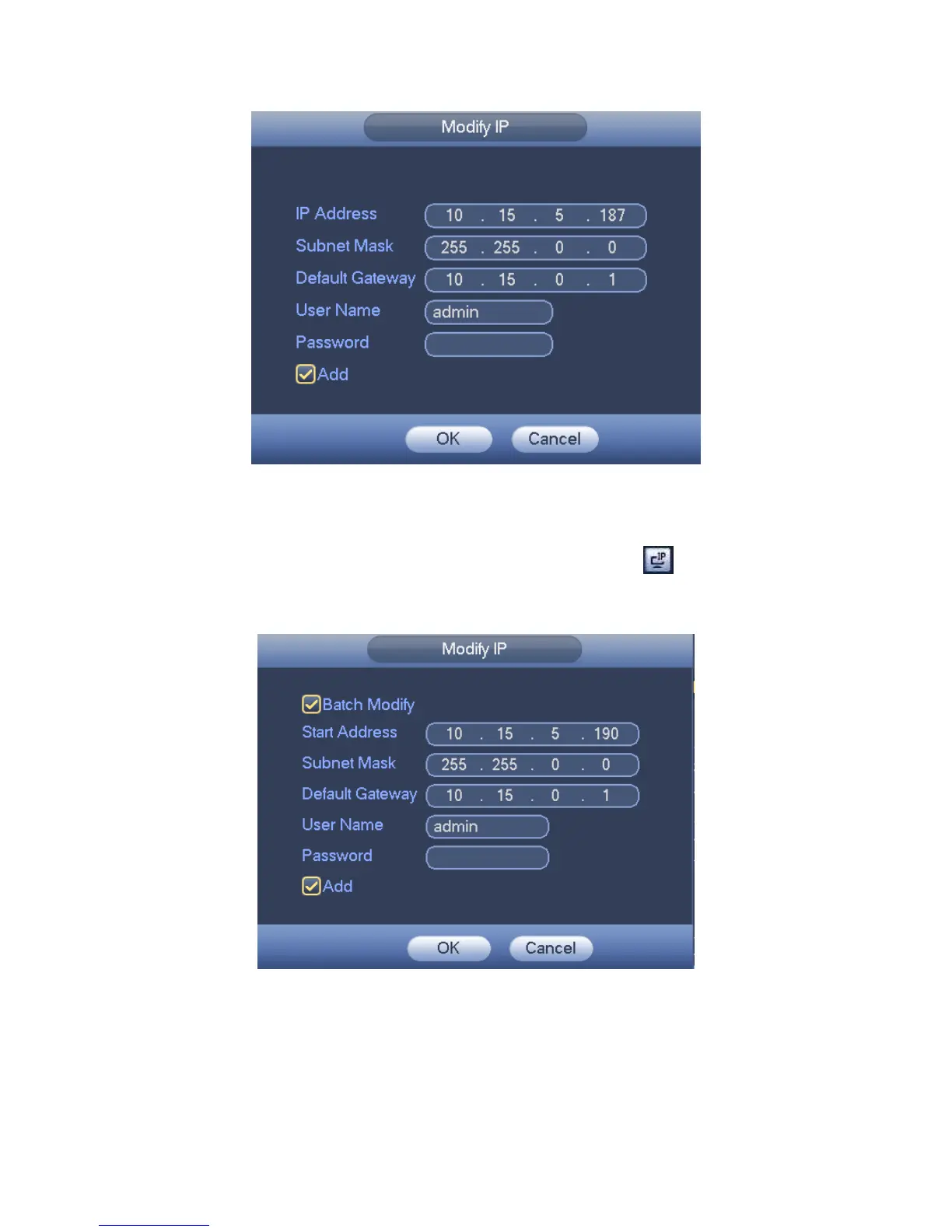 4-32. Please check Batch modify button and then input start IP, end IP and default
