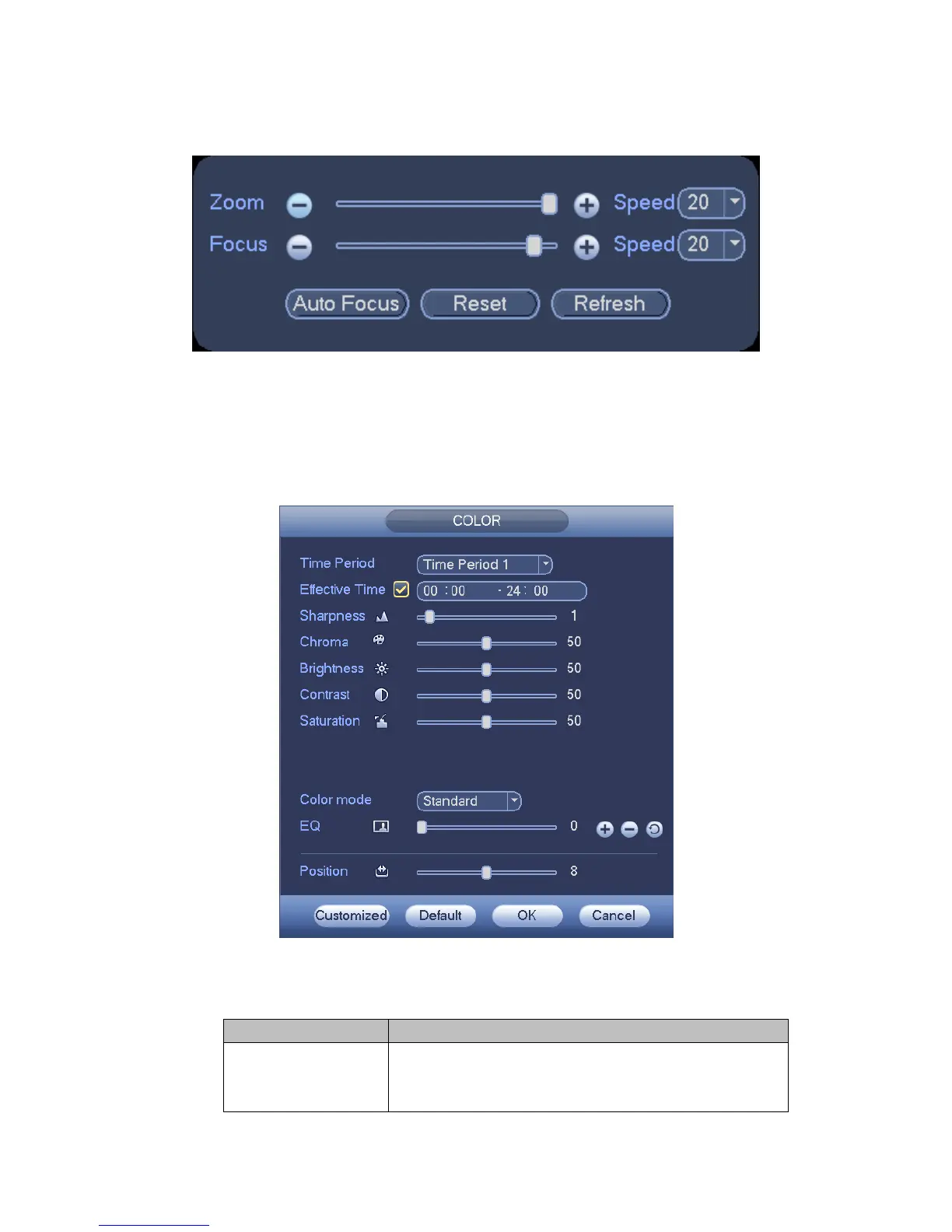 It is to set auto focus and zoom function. Click auto focus function, camera can realize