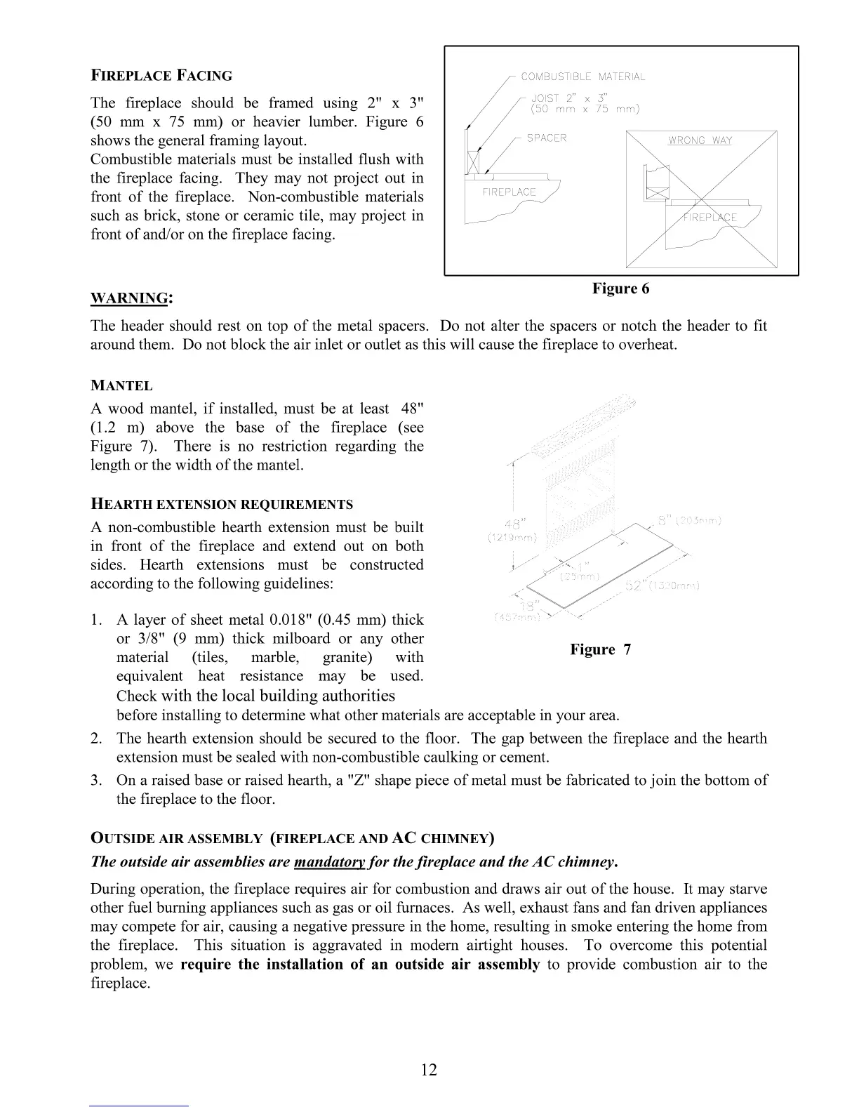 Security Fireplace SECURE HE43-1 - Fireplace Facing; Mantel; Hearth Extension Requirements; Outside Air Assembly (Fireplace and AC Chimney)