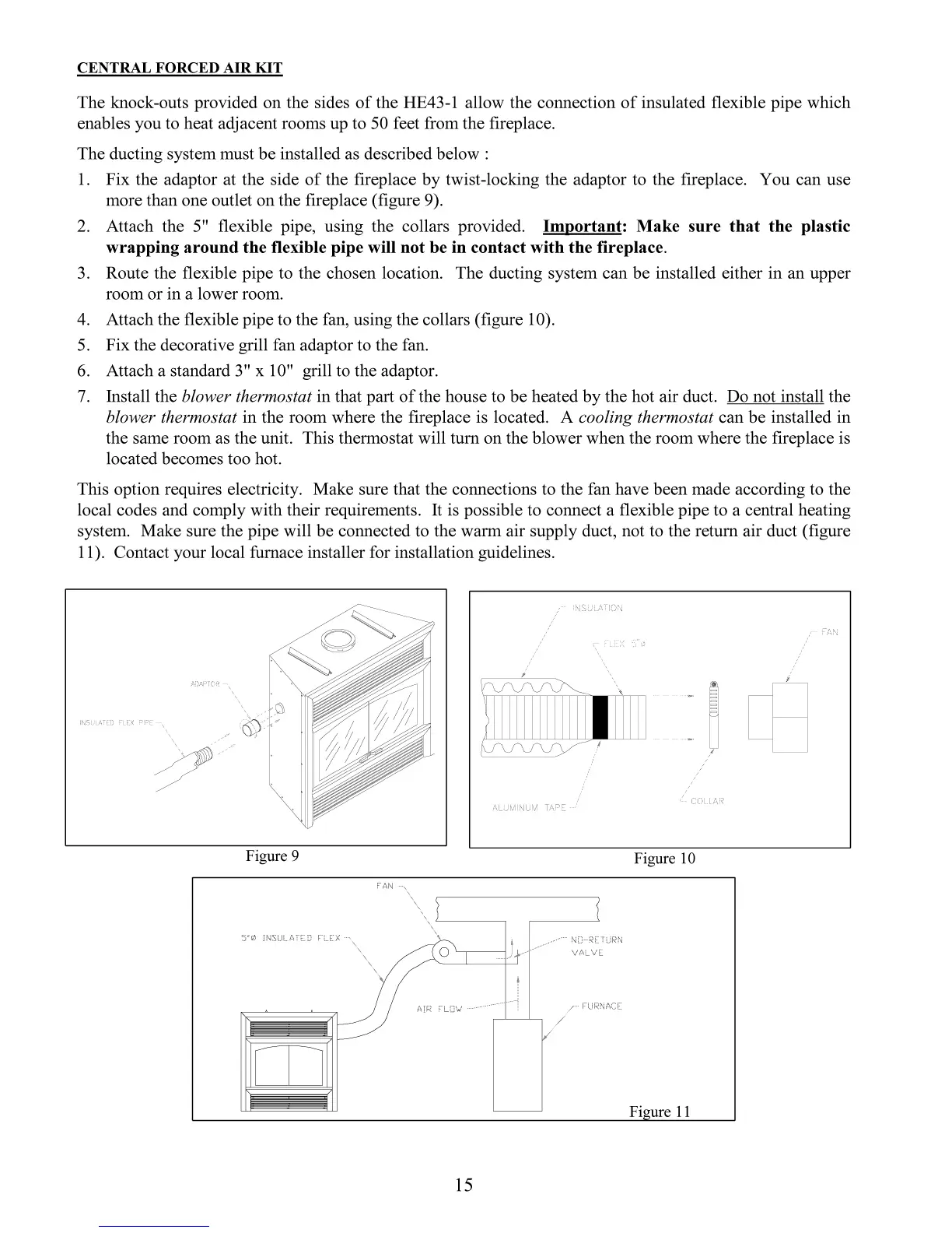 Security Fireplace SECURE HE43-1 - Central Forced Air Kit