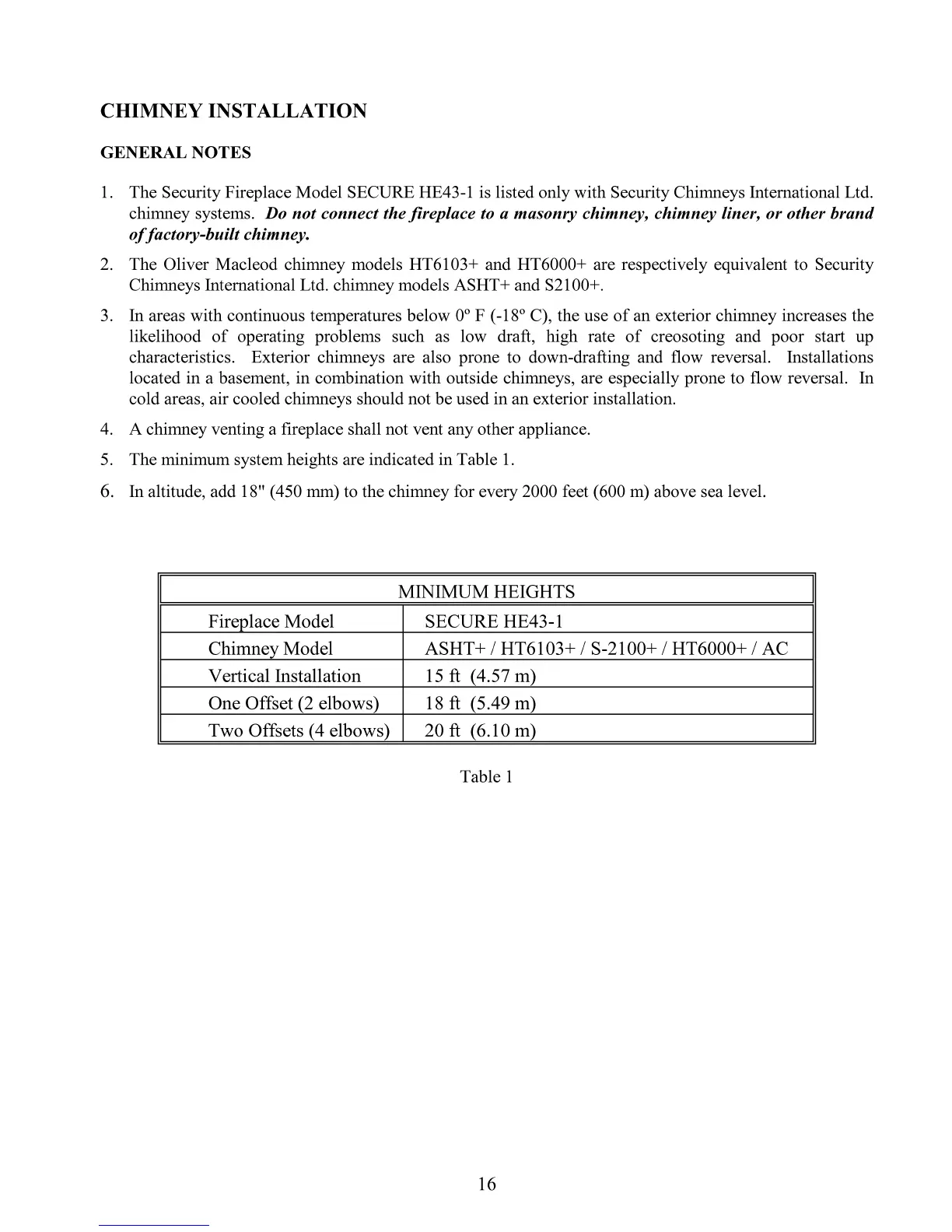 Security Fireplace SECURE HE43-1 - Chimney Installation; General Notes; Straight Installation
