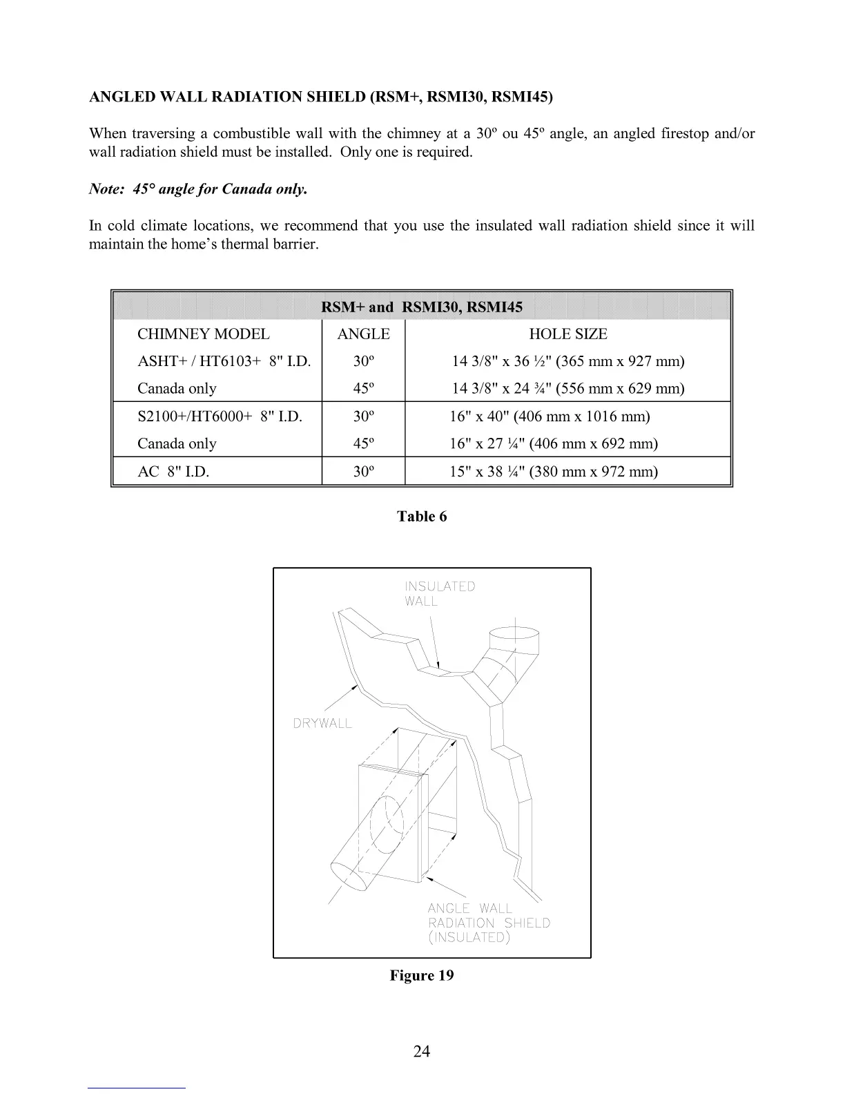 Security Fireplace SECURE HE43-1 - Angled Wall Radiation Shield (RSM+, RSMI30, RSMI45)