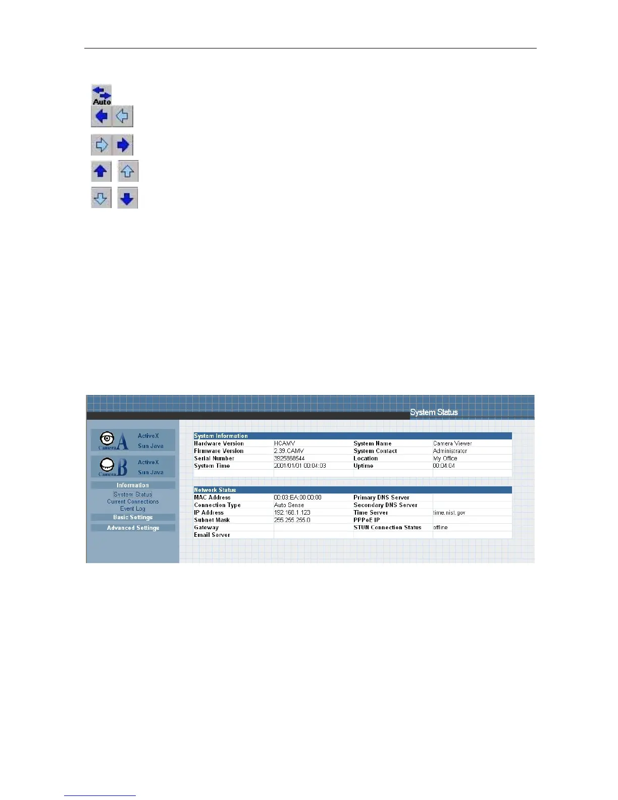 This section shows t h e IP Camera System Information such