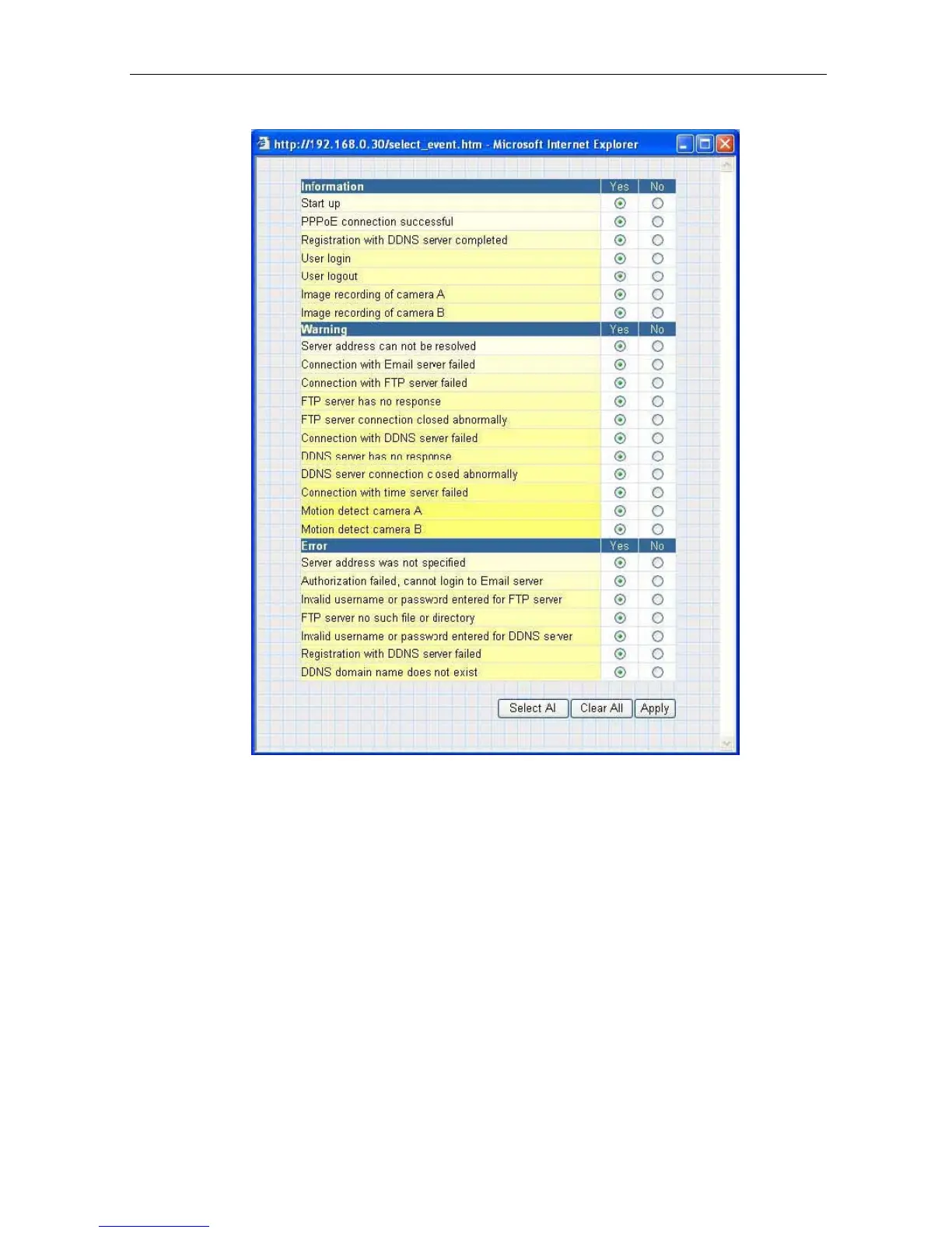 Fig.30 IP Camera Event Selection List