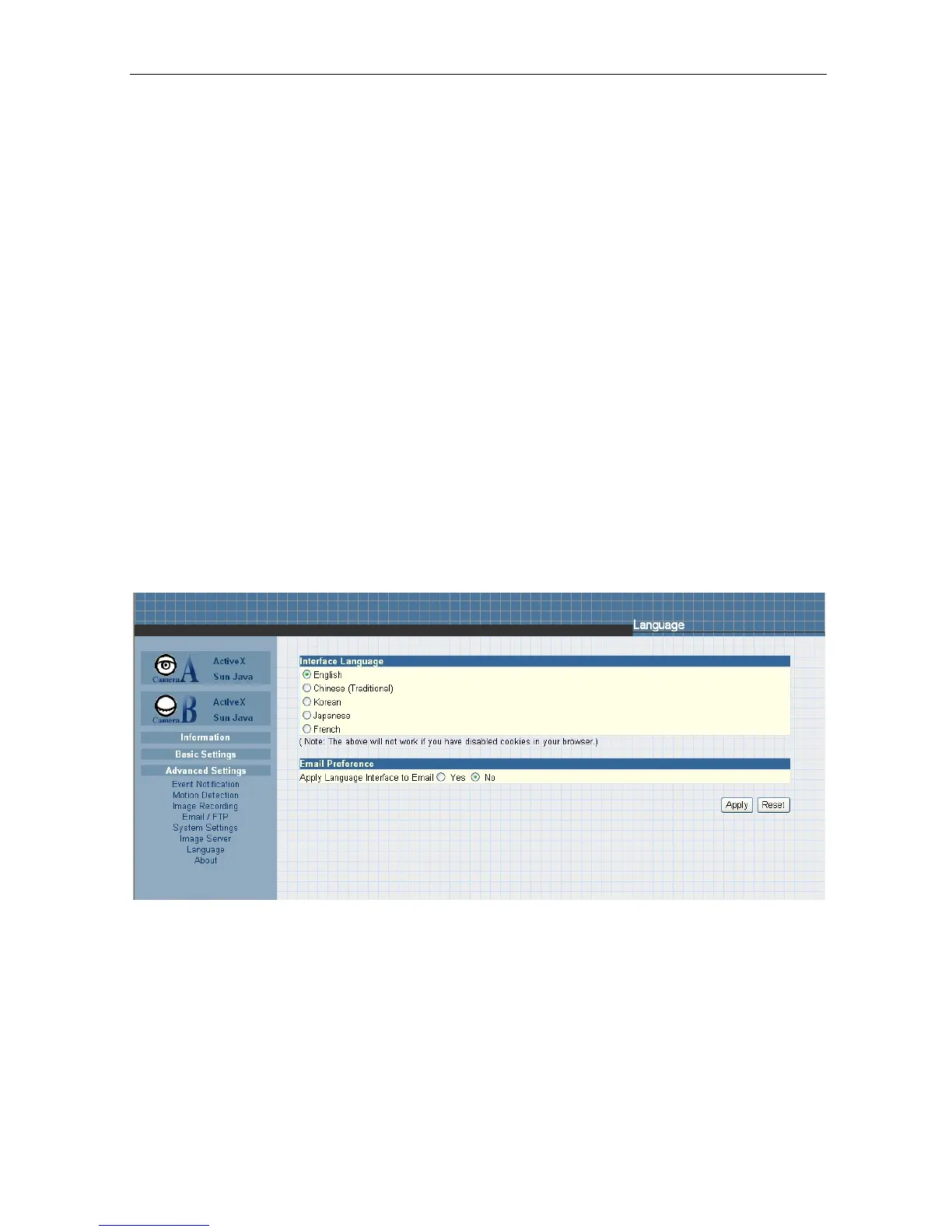 set IP Camera Interface language.