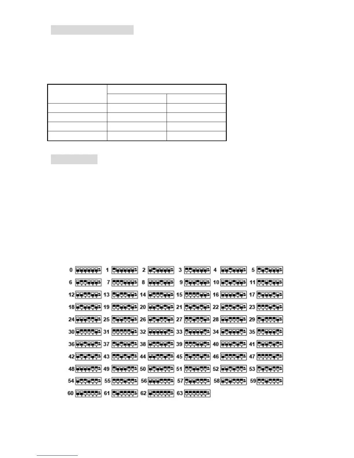 Table for ID switch setting (up is “ON”). Selection switch positions