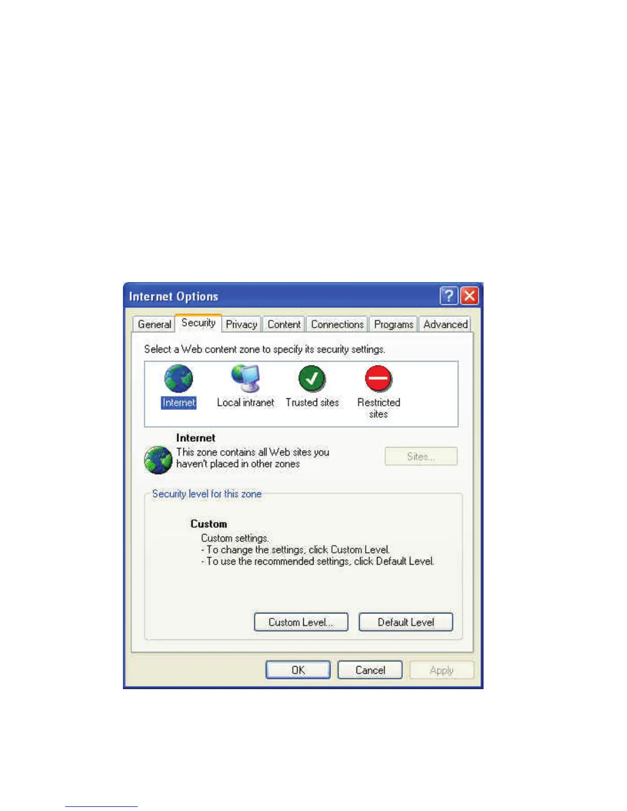 Select “Security”, and then click Custom Level”