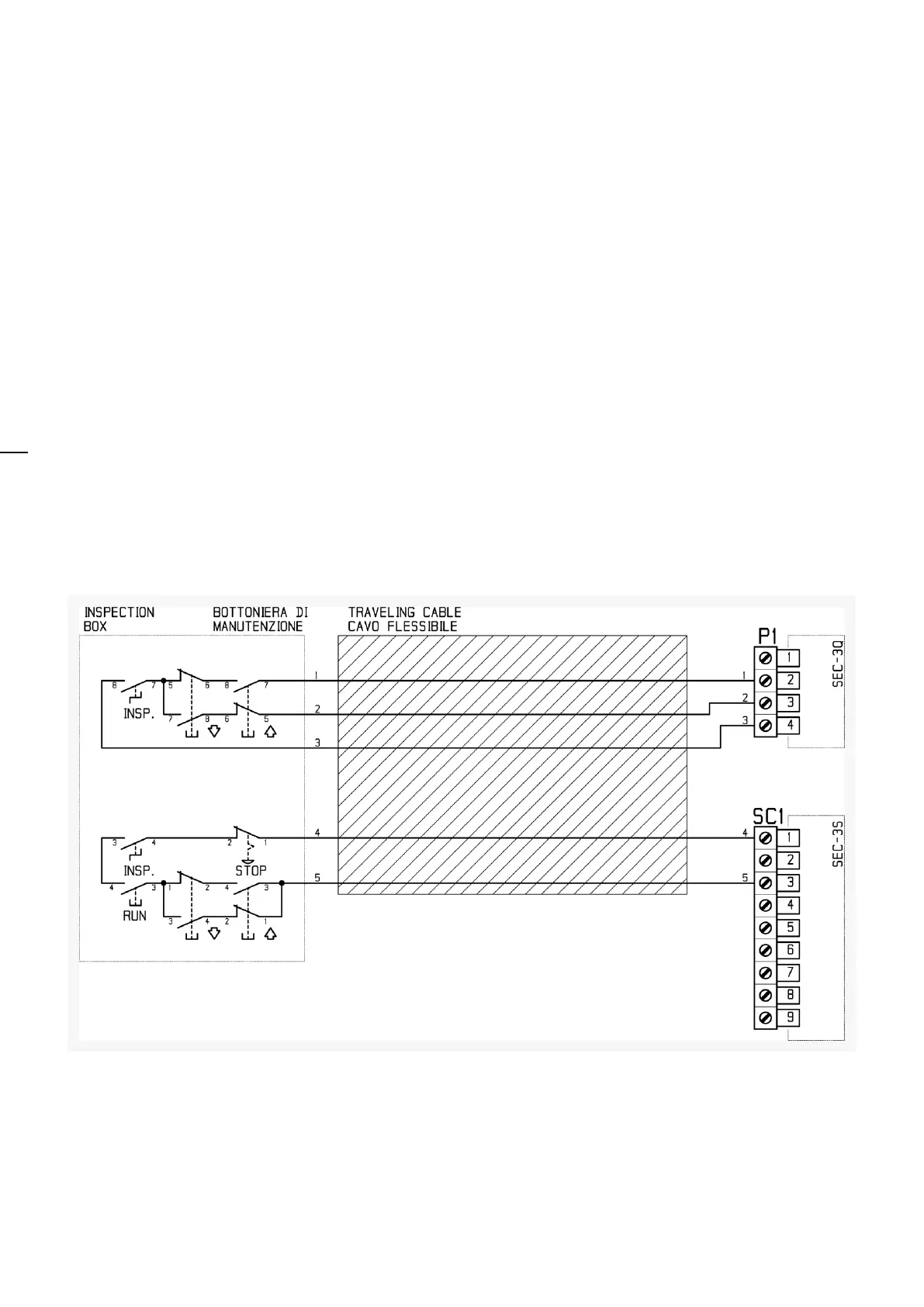 c) Brake supply (if traction lift) – terminals 50 e 51 (ref. page 4), or BR+ e BR- (ref. page 22)