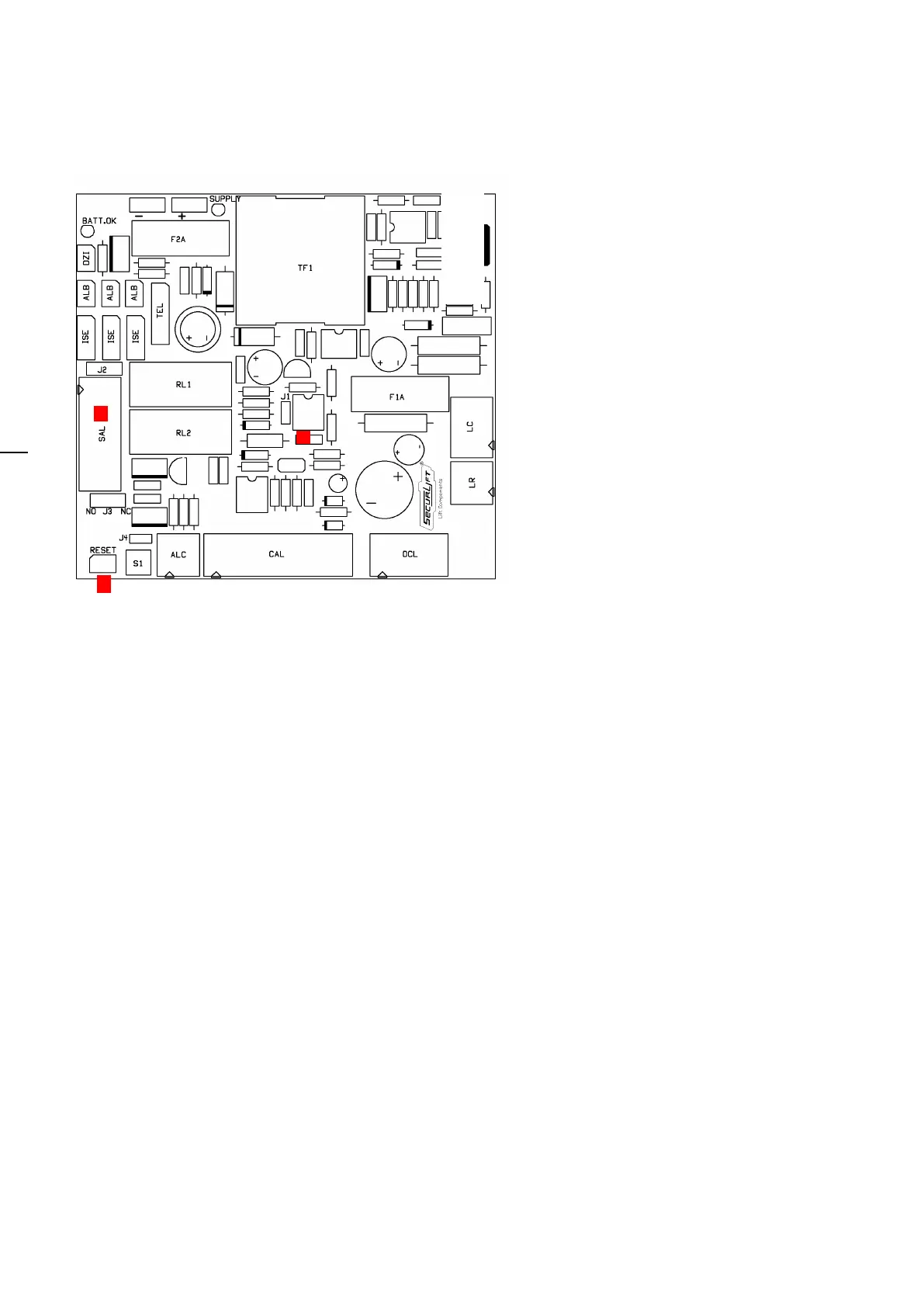 SEC-2FDR is the alarm interface board, and provides for battery charge and check.