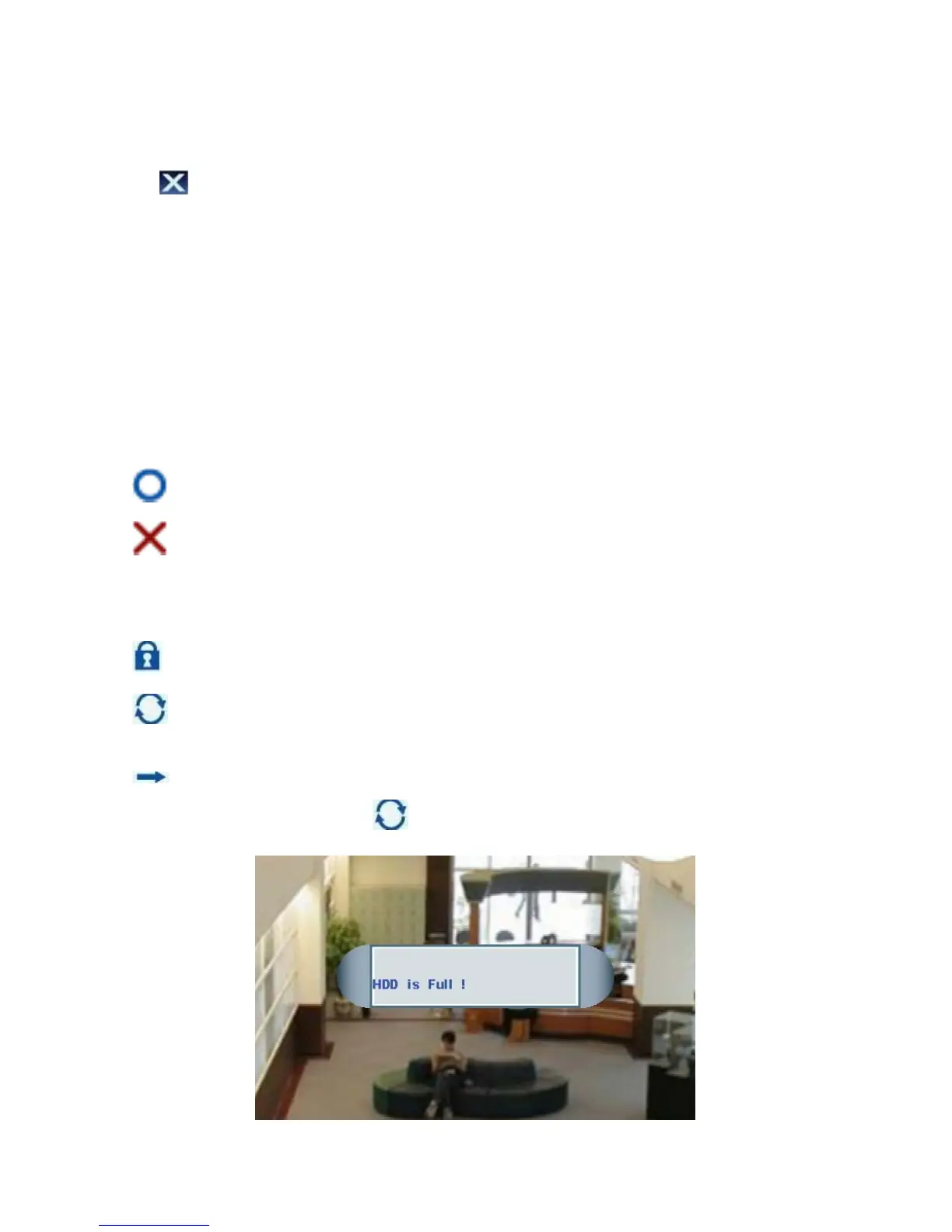 Continuing Recording: the HDD will be overwritten when it is full. HDD status bar