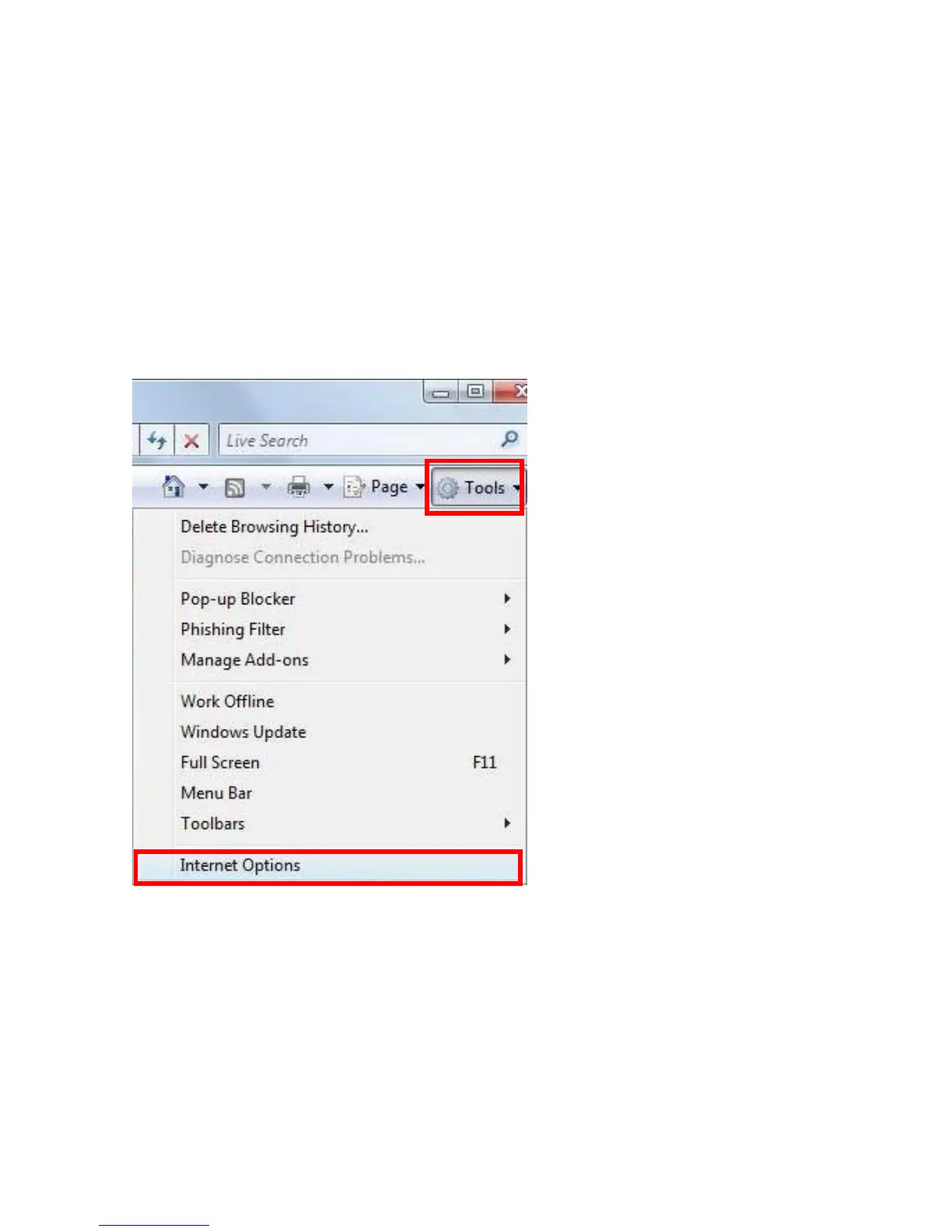 Click [Tools] of Internet Explorer browser, choose [Internet Options]