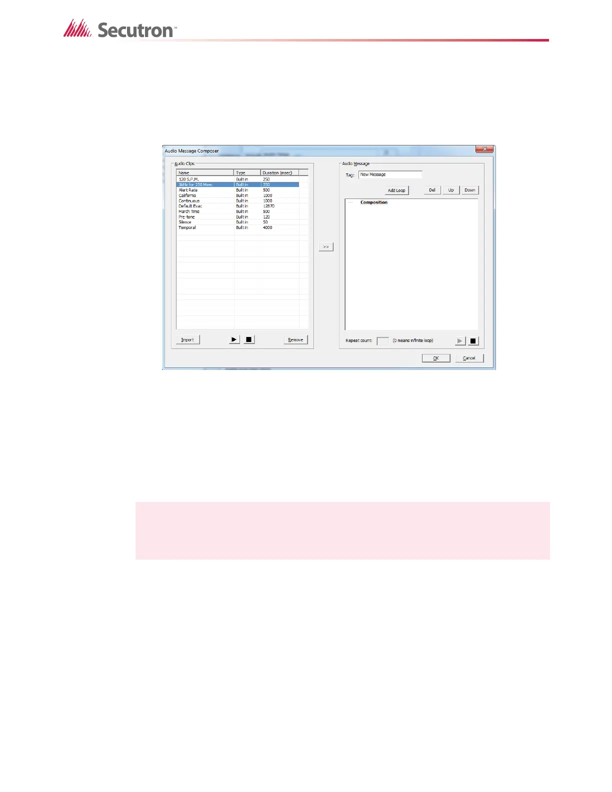 5. Click the >> button to move an audio clip to the Audio Message list.