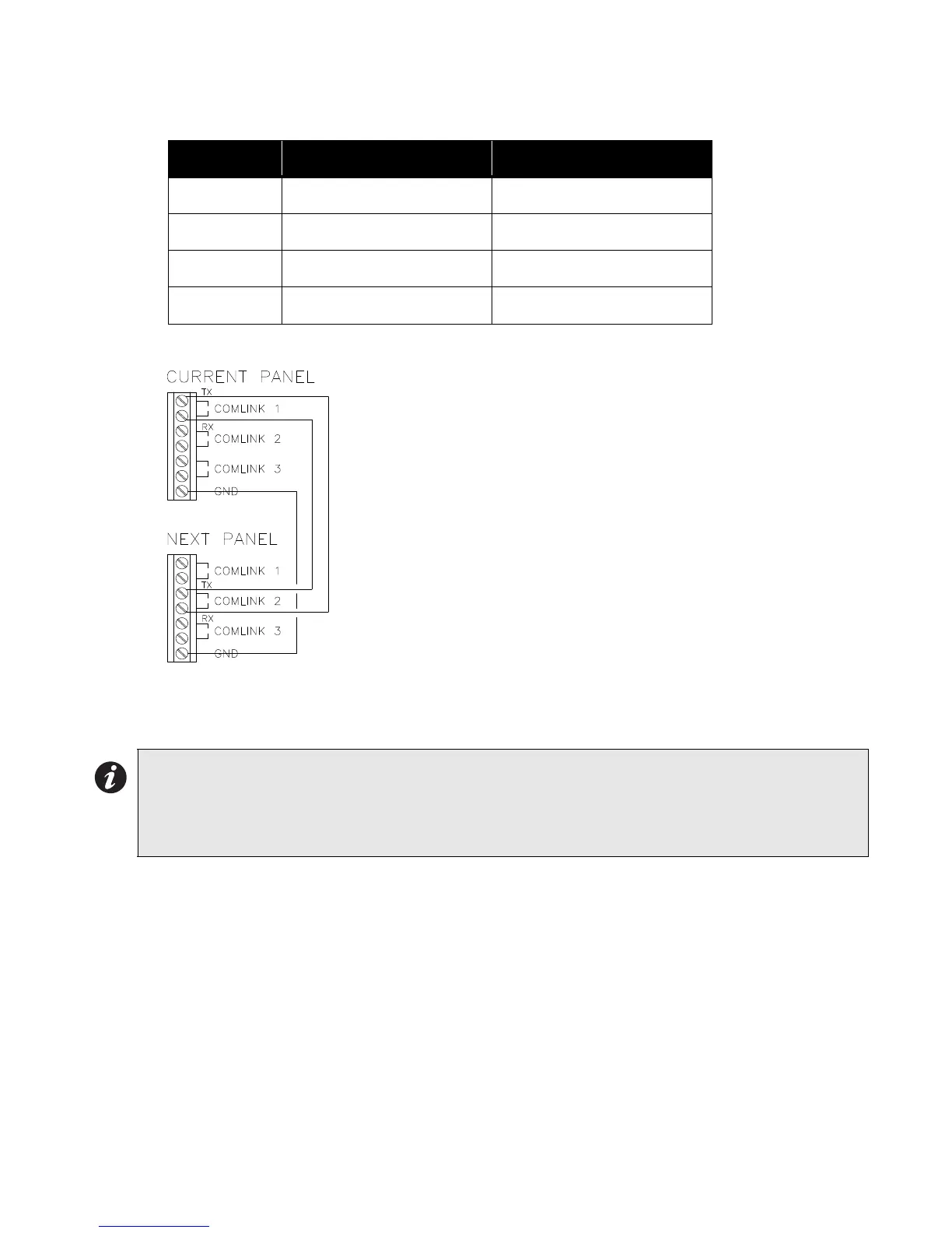 RS-232 Network wiring uses three (3) wires between each panel (see