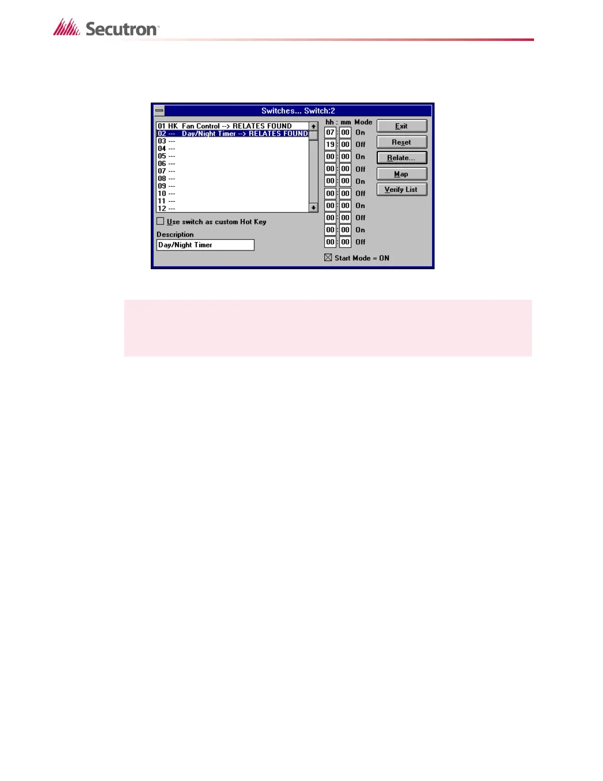 hot key can be assigned to turn the switch on and another to turn it off. These keys are marked
