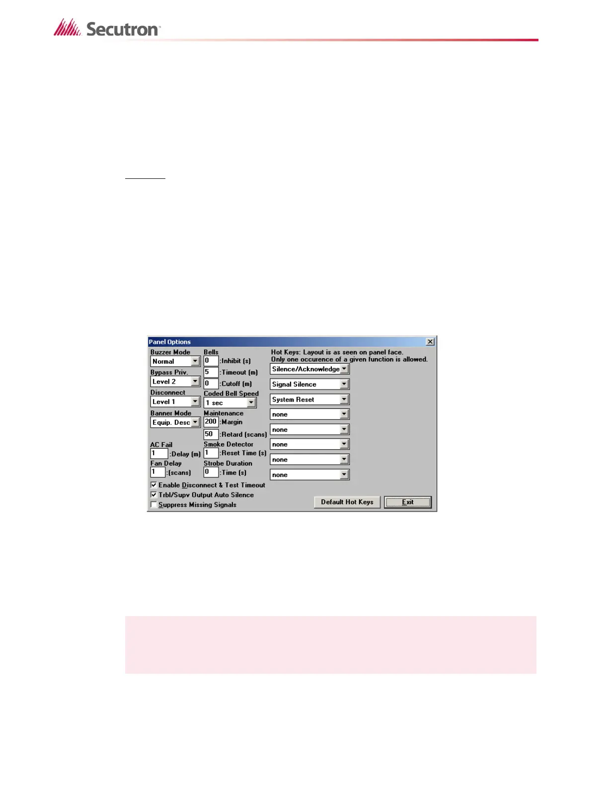 The Options Dialog (see Figure 12) allows for the programming of the panel and annunciator