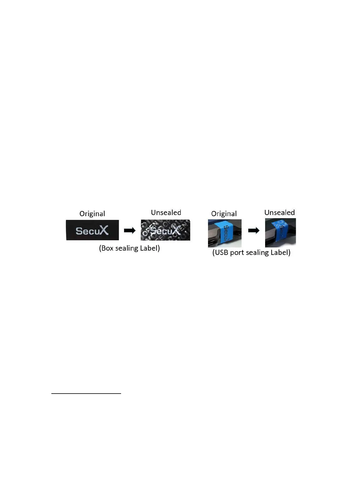 check carefully the anti-tamper labels on the packaging box and USB port of the device