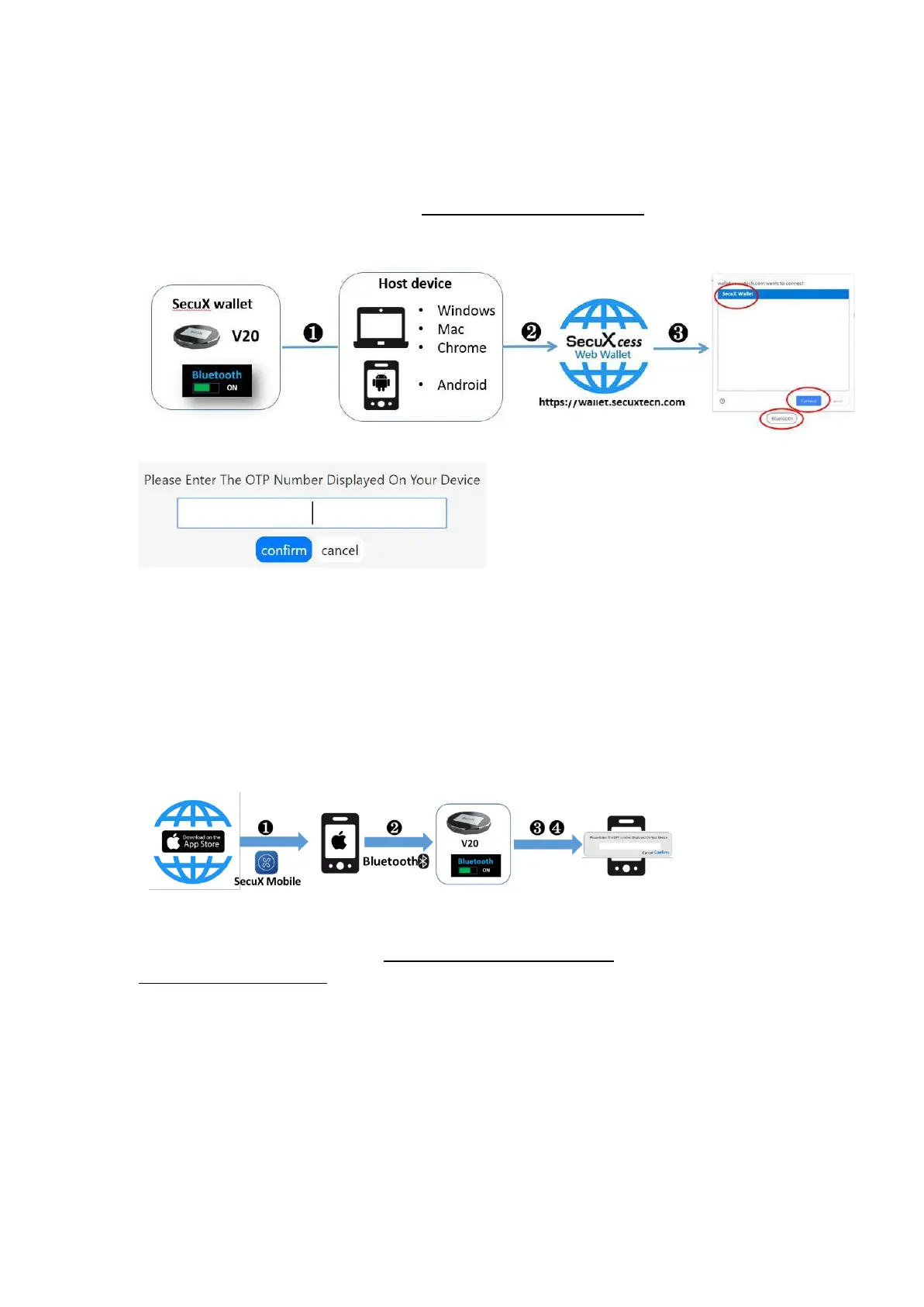 ❸ Activate the SecuXcess app and select your SecuX wallet from the Bluetooth search list to