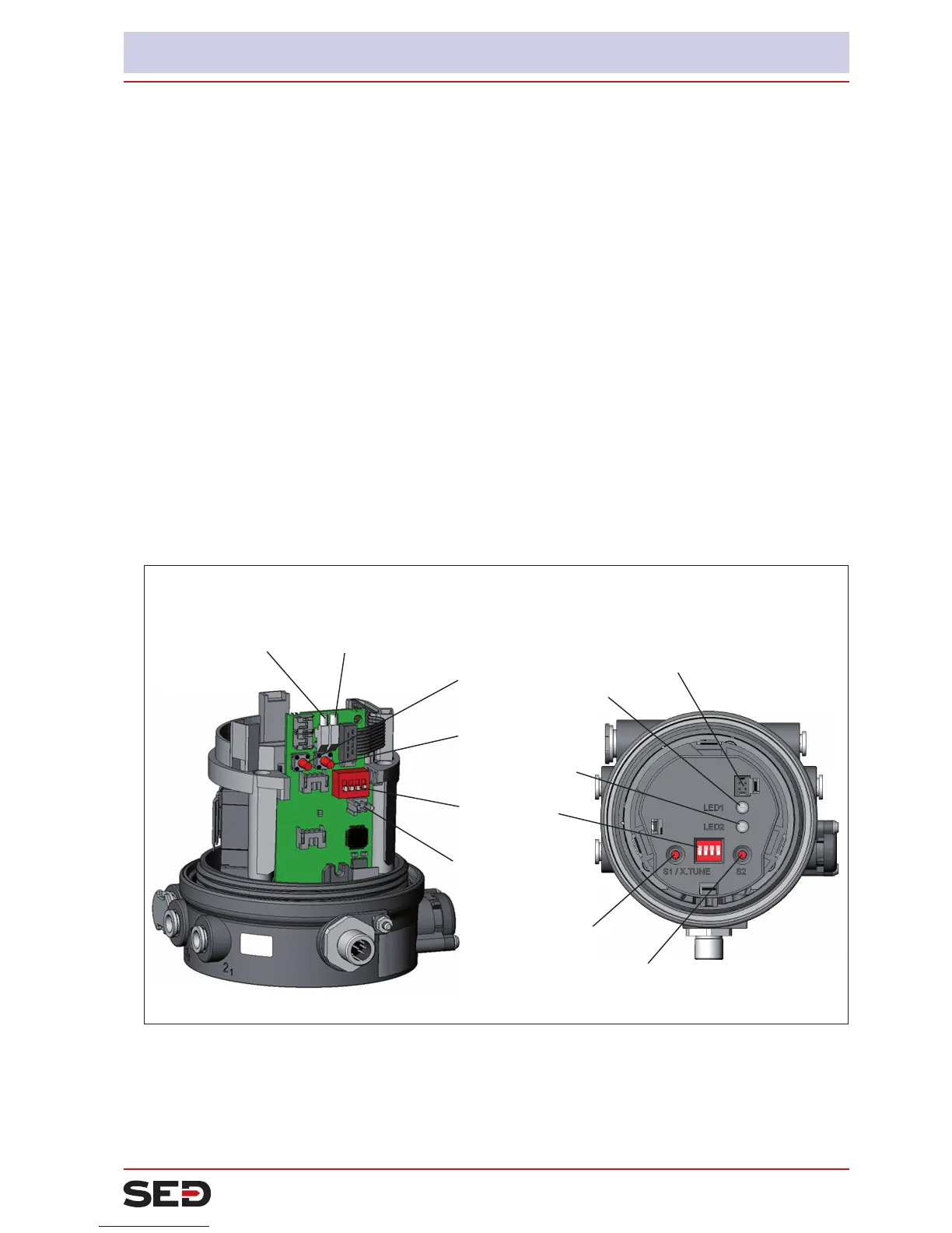 The positioner features 2 buttons, 4-pole DIP switches and 2x 2-colored LEDs as a display element.