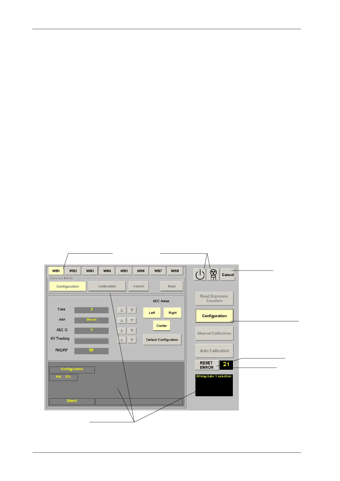 The screens to “Read Exposure Counters”, to enter in “Configuration”, “Manual