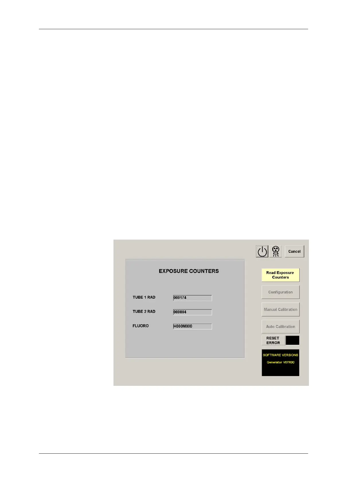 3. Exit from this screen by pressing the “Read Exposure Counters” button