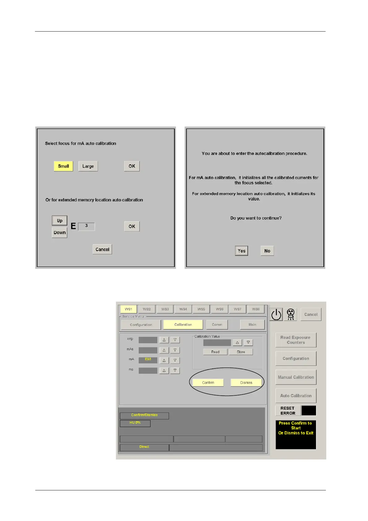 the respective button (“Confirm”or“Dismiss”) on the calibration screen.