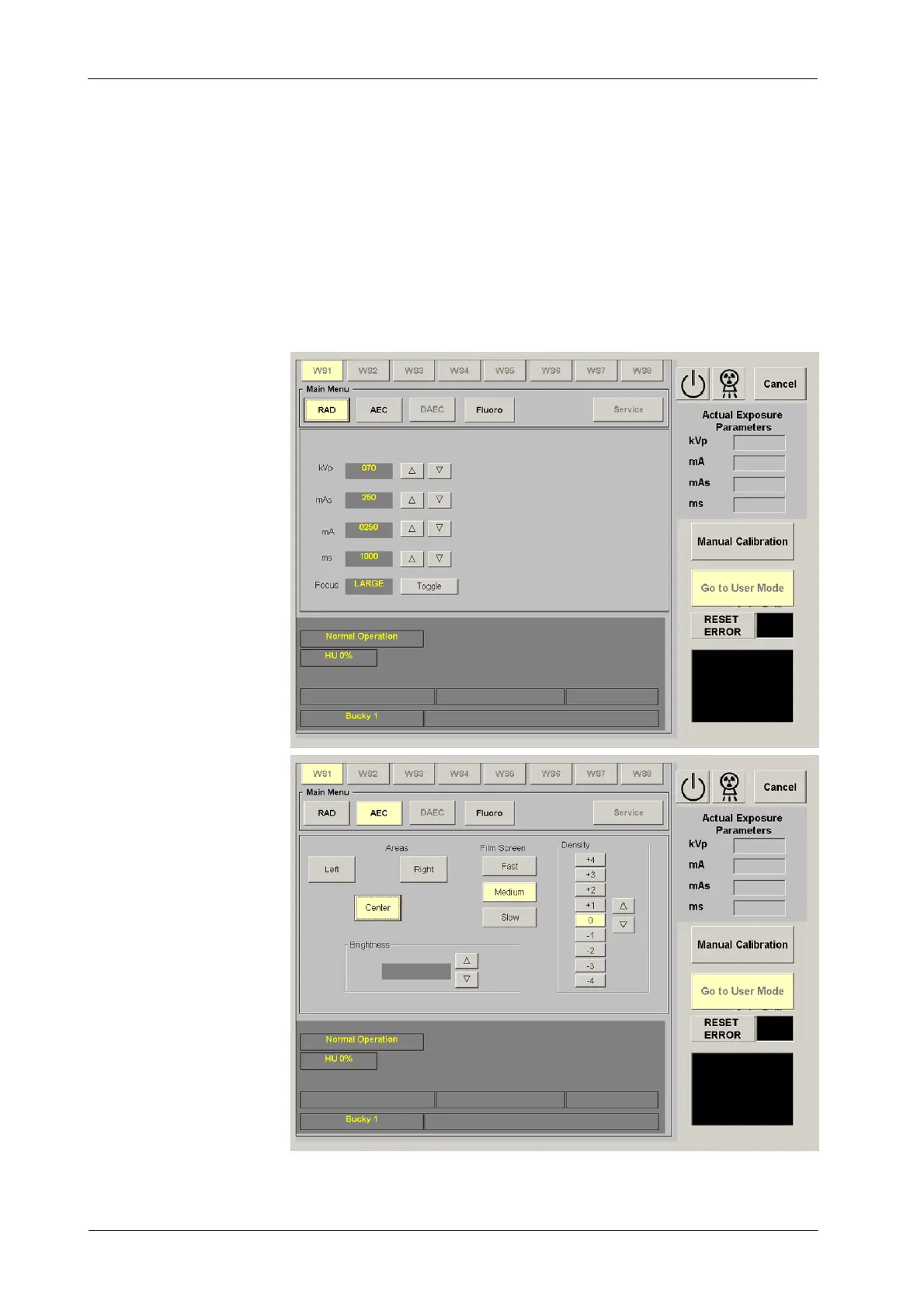 G RAD Menu: 70 kV, 200 mA Large Focus (or the first mA station for