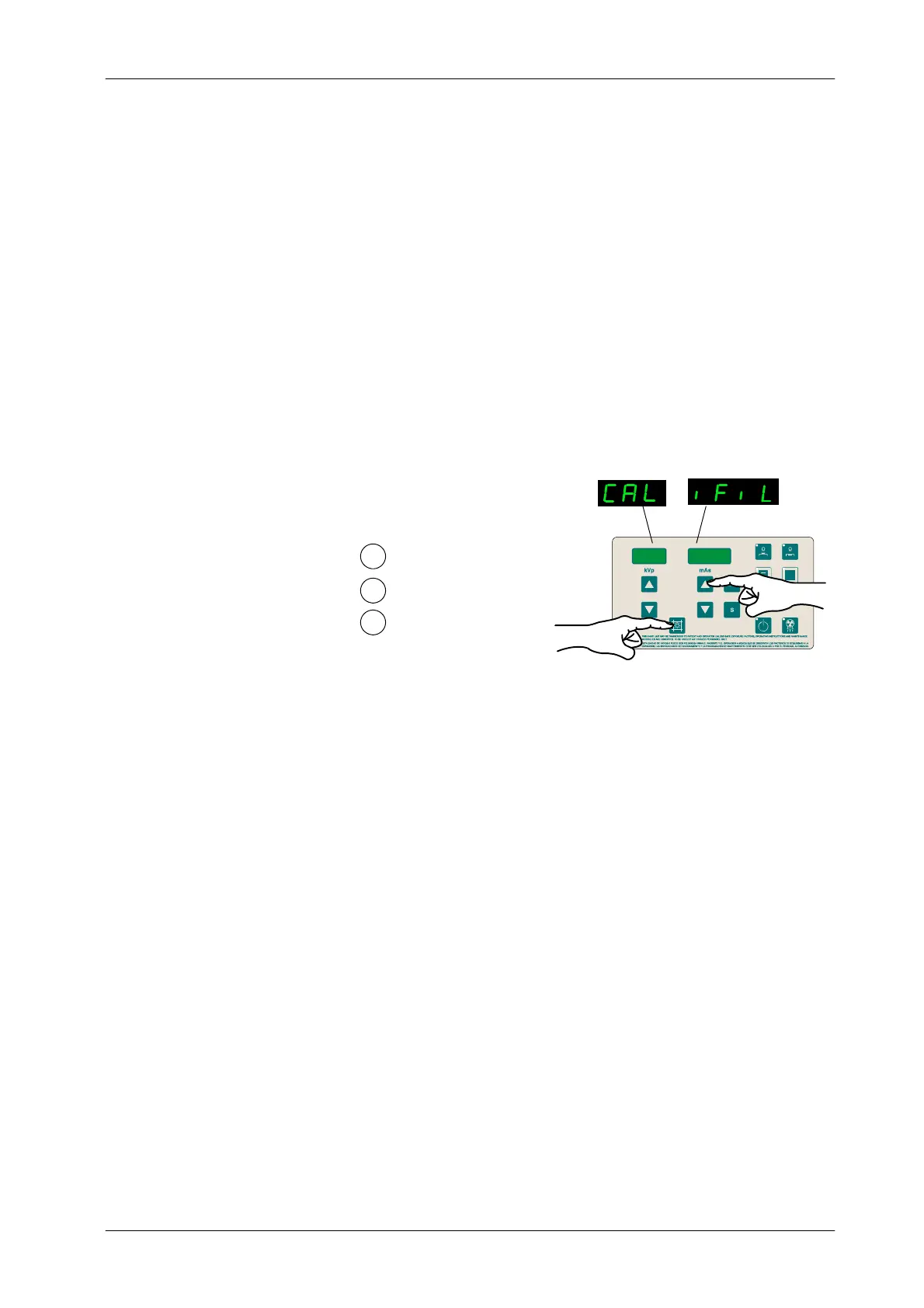 1. To enter Calibration of Filament current press and hold “Collimator