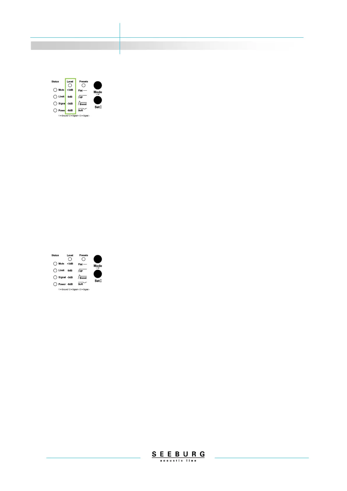 available: +3 dB, 0 dB (standard), -3 dB and -6 dB. The setting is