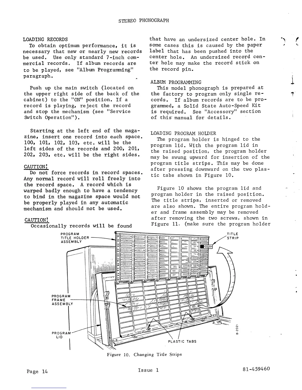 Seeburg STD4 - Loading Records; Album Programming; Loading Program Holder; Changing Title Strips